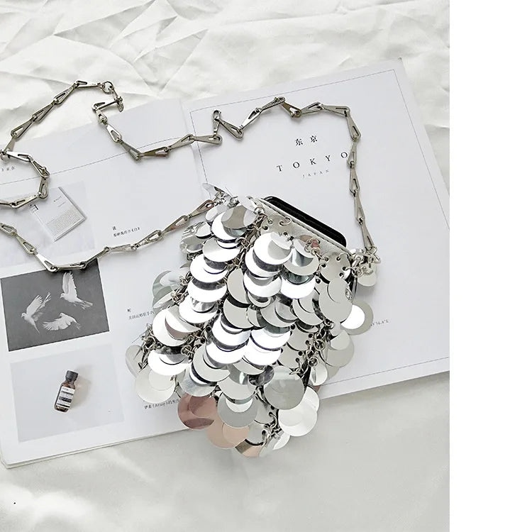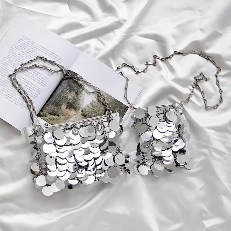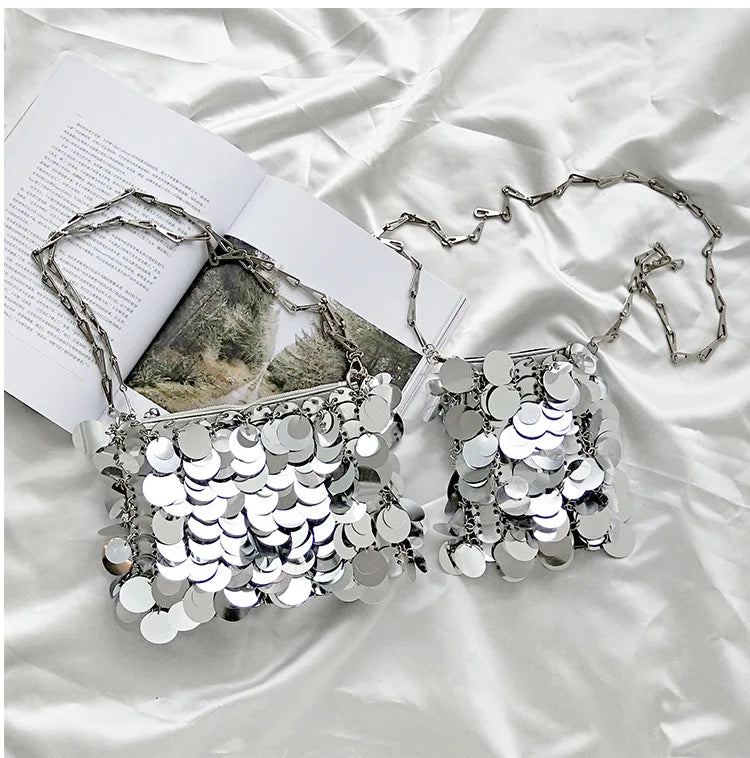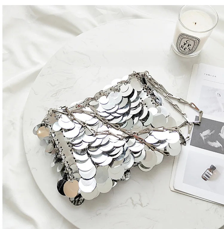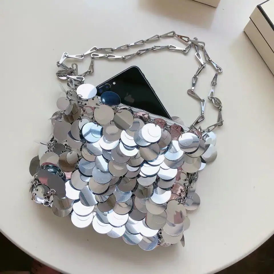 Sequins Handbags Silver Bag Women Small Tote Bag Bling Bling Fashion Lady Bucket Handbags Girls Glitter Purses 2023