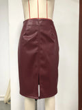 Sexy Leather Slim Slit Skirts, Casual PU Fashion Bodycon Skirts, Women's Clothing