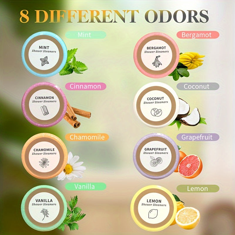 Shower Steamers Variety Pack - 8 Essential Oil Shower Bombs with Lavender, Mint, Vanilla, Bergamot, Lemon, Cinnamon, Coconut, Grapefruit Scents - Self-Care & Relaxation Gift for Women and Men, Spa Experience Shower Companion,