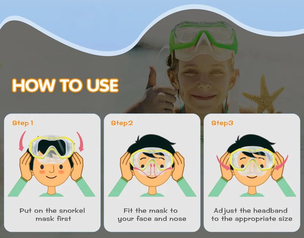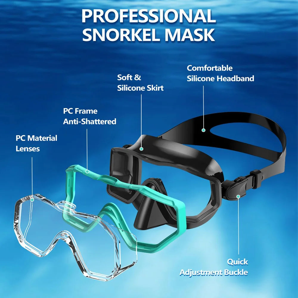 Snorkel Mask 3 Windows Panoramic Wide View HD Three-Lens Adjustable Scuba Snorkeling Swimming Diving For Adults and Kids