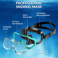 【Three-Lens Panoramic Clear View】Snorkel mask add two lenses on both sides.Three-lens versions provide a wider field of view.Our snorkel mask adopts transparent flat lens made by high definition premium PC material, preventing from distortion the view and eliminating the dizziness underwater.