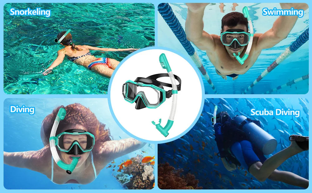 【Easy to Adjust and Connect】The diving mask has wide head strap and touch adjustment buckles.The mask fits comfortably around your head and also be easy to adjust, if necessary under the water.The snorkel is super easy to attach and move to the appropriate fit.