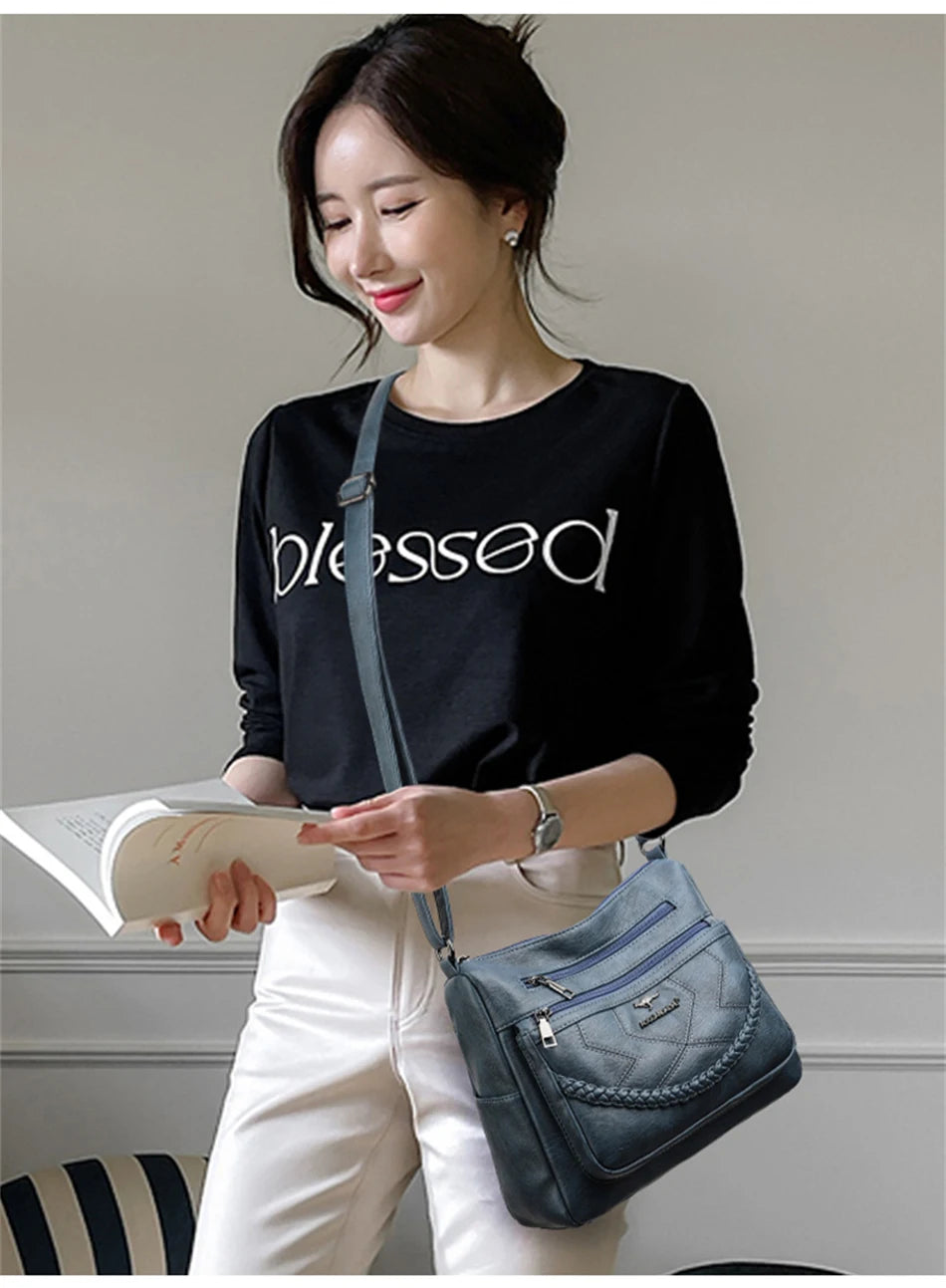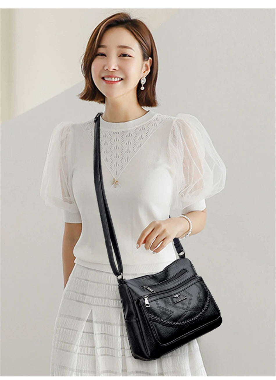 Women's Vintage Soft Leather Shoulder Bags Multi-Layer Classic Crossbody Bag Luxury Designer Handbag and Purse 2022 Trend Sac