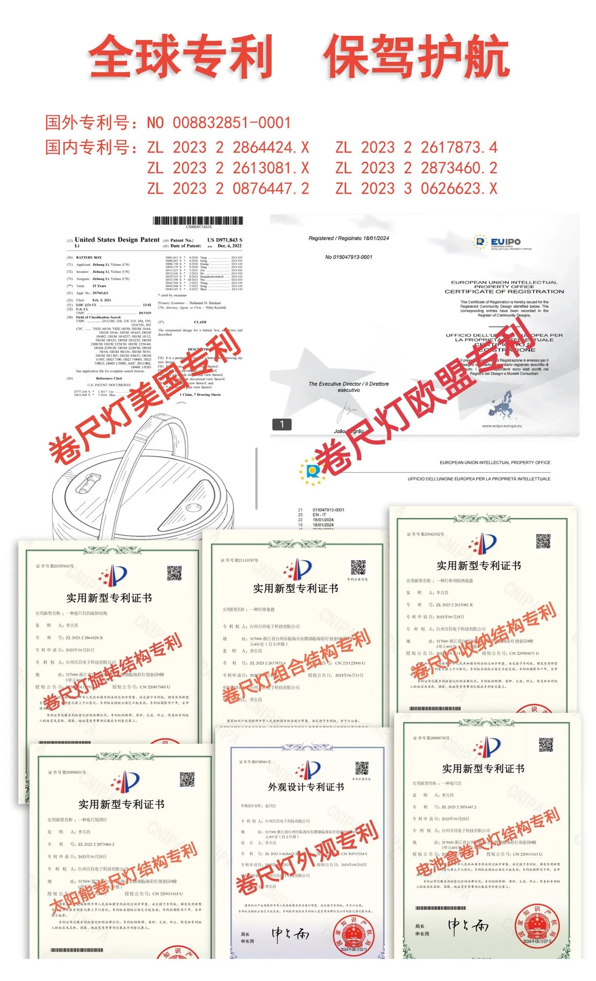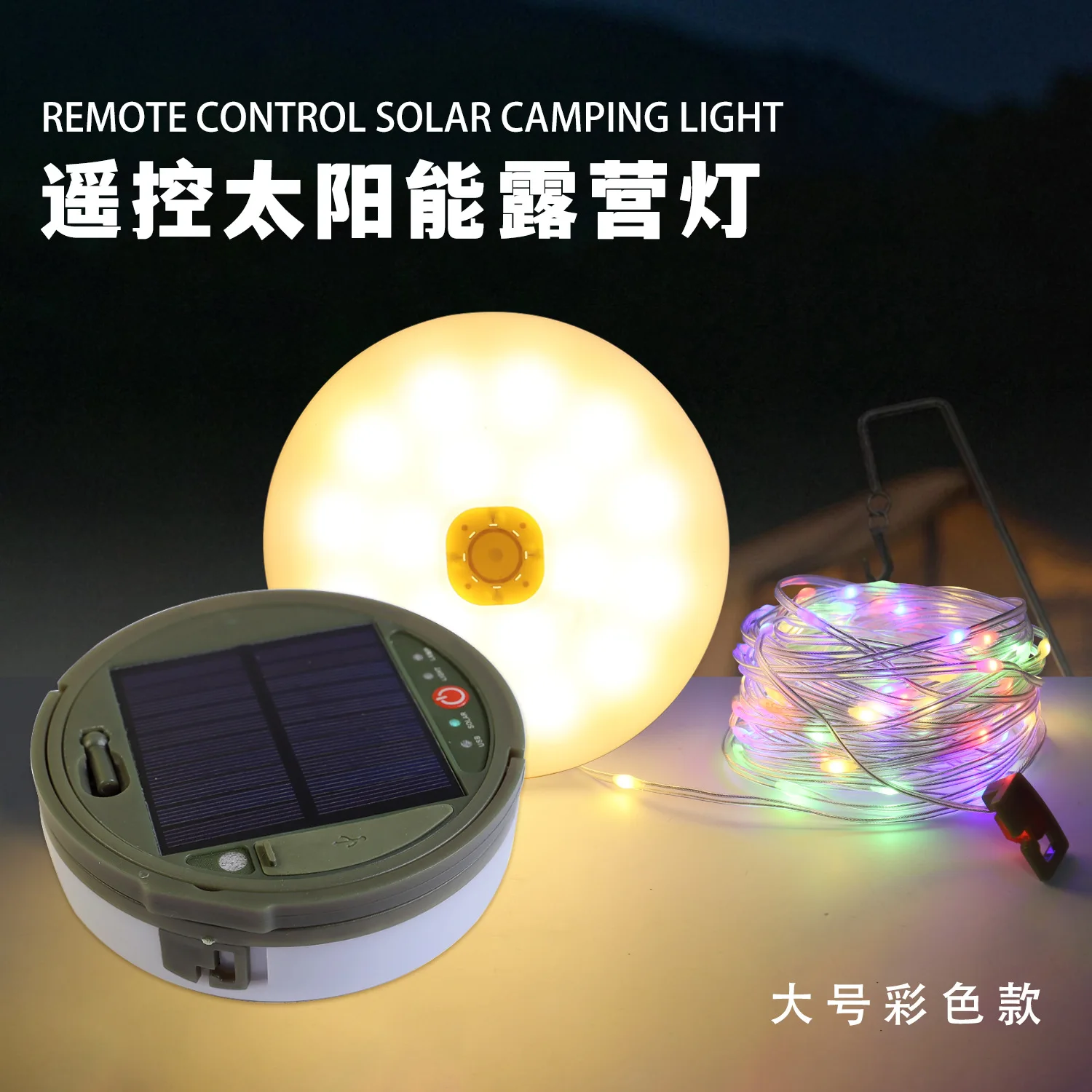 Solar powered outdoor camping tents, ambient lights, lighting fixtures, measuring tape, storage camping light strings