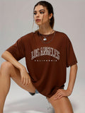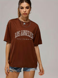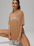 Solid Color Letter Print Casual Sports T Shirt, Soft Crew Neck Short Sleeve Tee, Women's Clothing