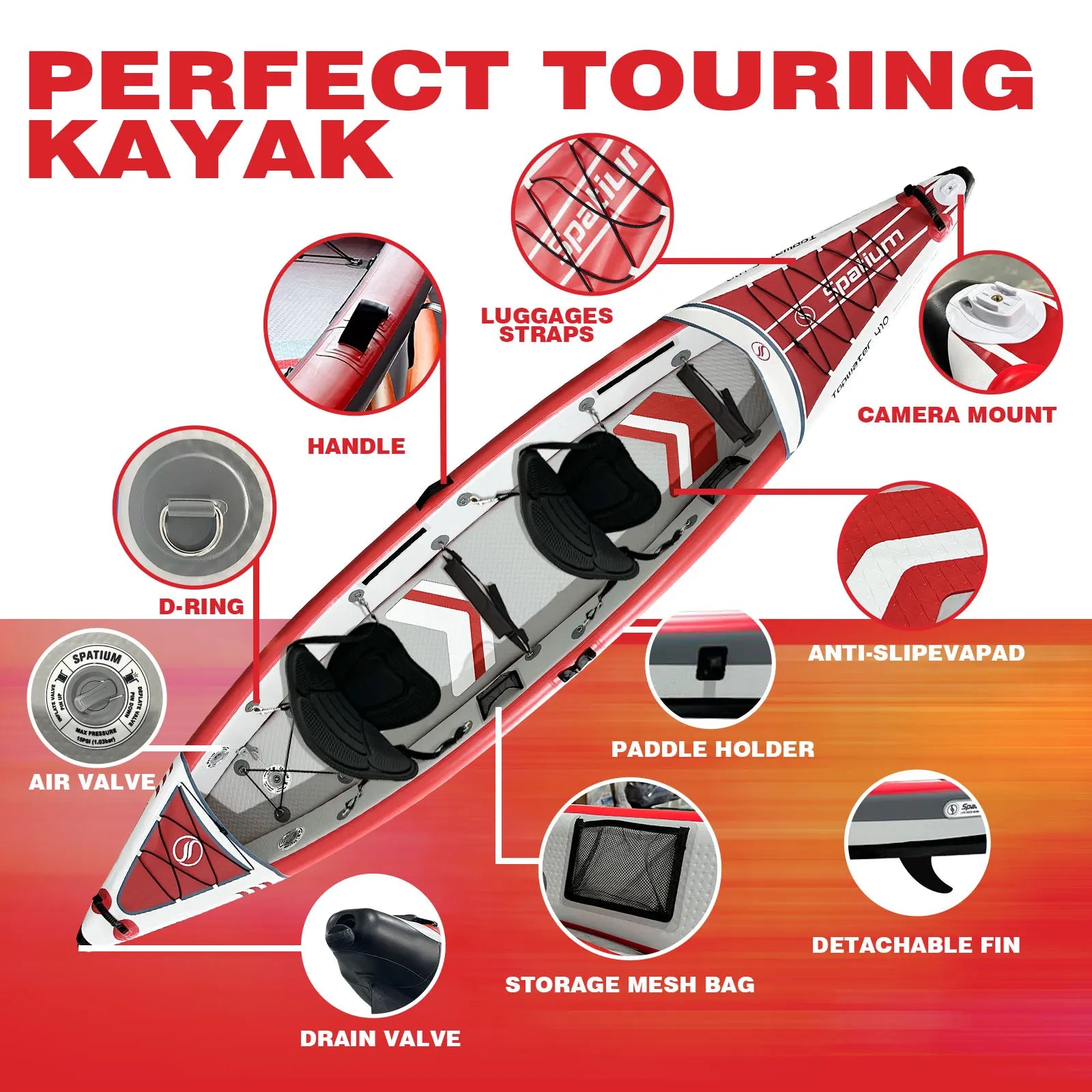 Spatium 1-2-Person Inflatable Kayak Fishing Kayak – Lightweight Comfortable with Adjustable Seat Tandem Kayak - Sit on Top Kayak