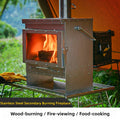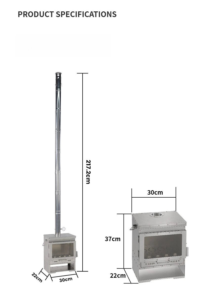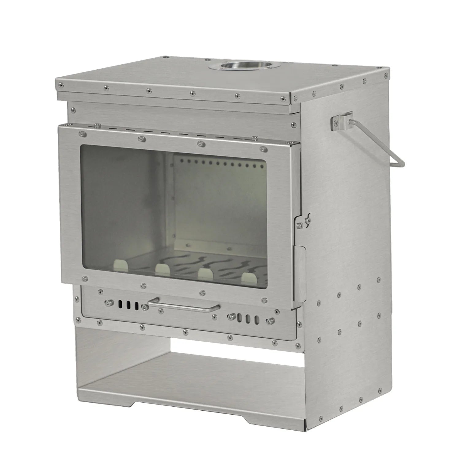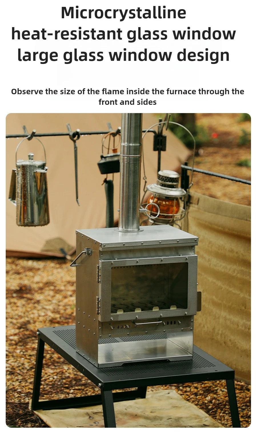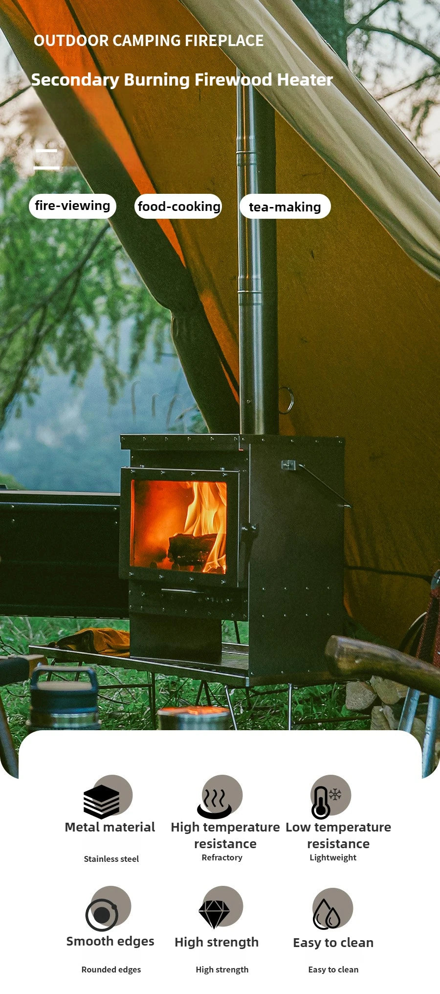 Stainless Steel Smokeless Fireplace Secondary Burning Wood Stove Large Glass Window Camping Tent Stove Firewood Heater Brazier