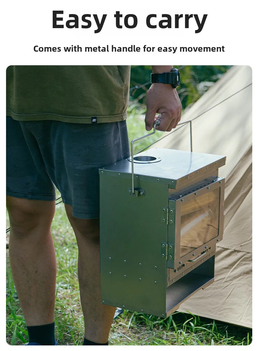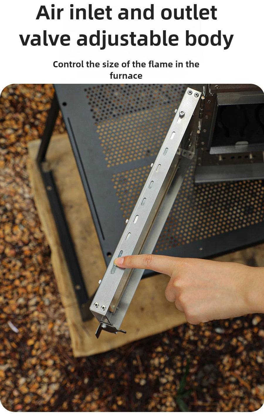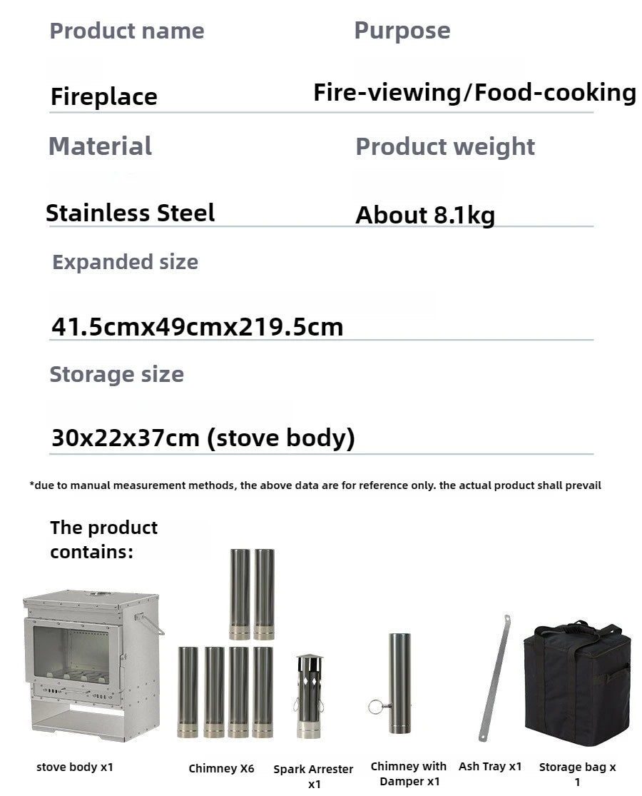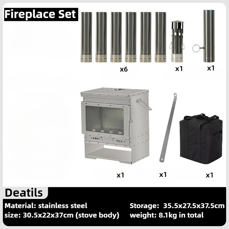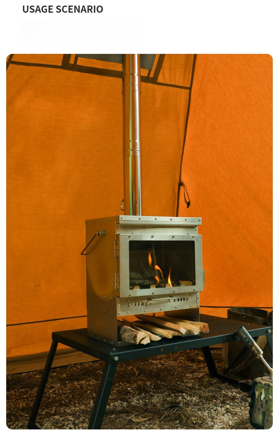 Stainless Steel Smokeless Fireplace Secondary Burning Wood Stove Large Glass Window Camping Tent Stove Firewood Heater Brazier