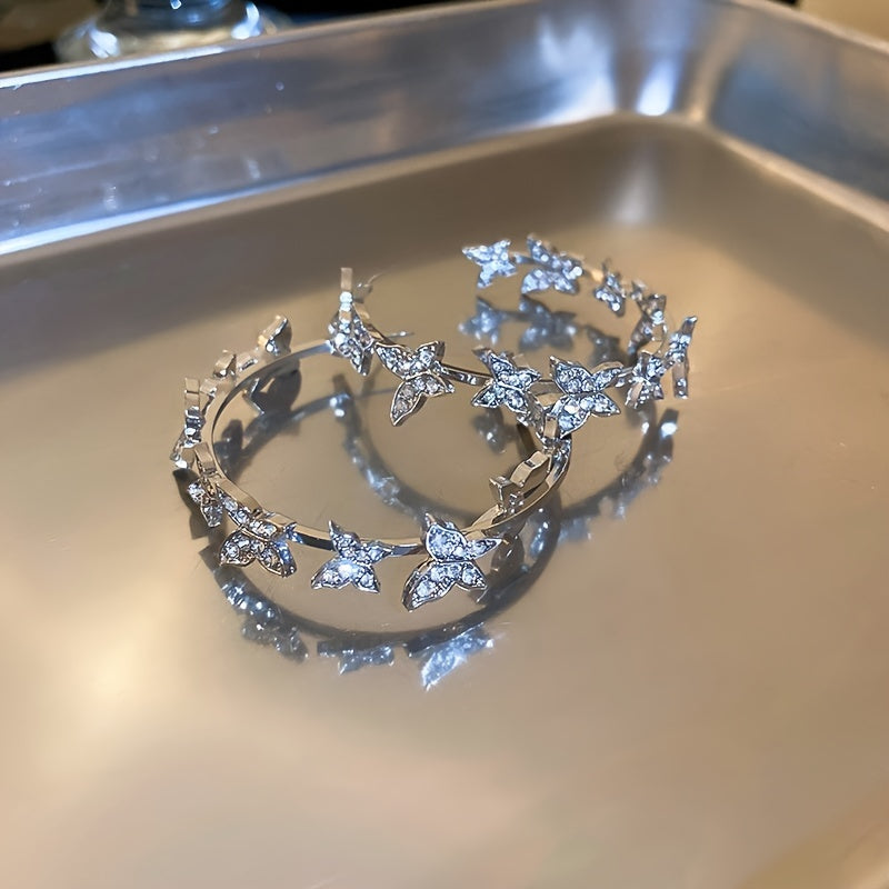 Sterling Silver Exaggerated Butterfly Shaped Hoop Earrings - Statement Jewelry for Women with Unique Personality and Temperament, Elegant Ear Accessories with Delicate Needle Details, Perfect for Everyday Wear or Special Occa