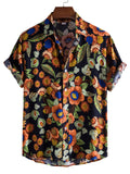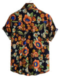 Stylish Mens Floral Short Sleeve Shirt - Breathable Cotton Blend, Relaxed Fit, Lapel Collar, Button Front, Hand Washable - Perfect for Casual Summer Outings