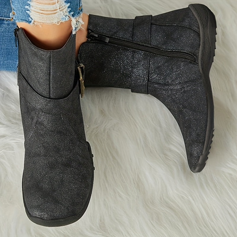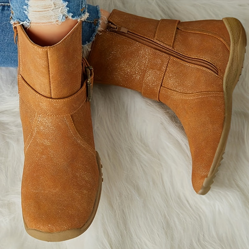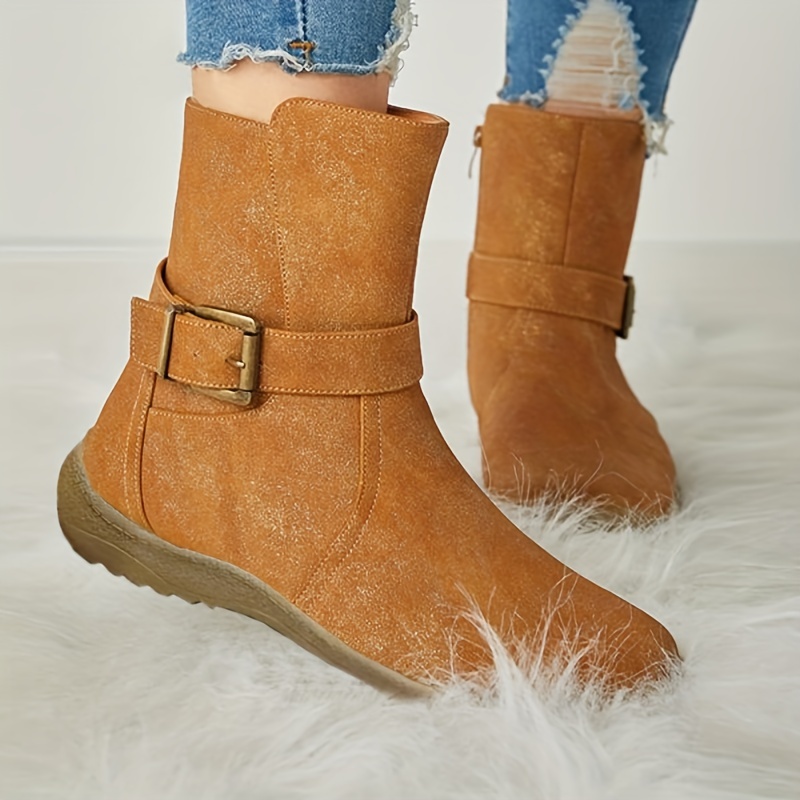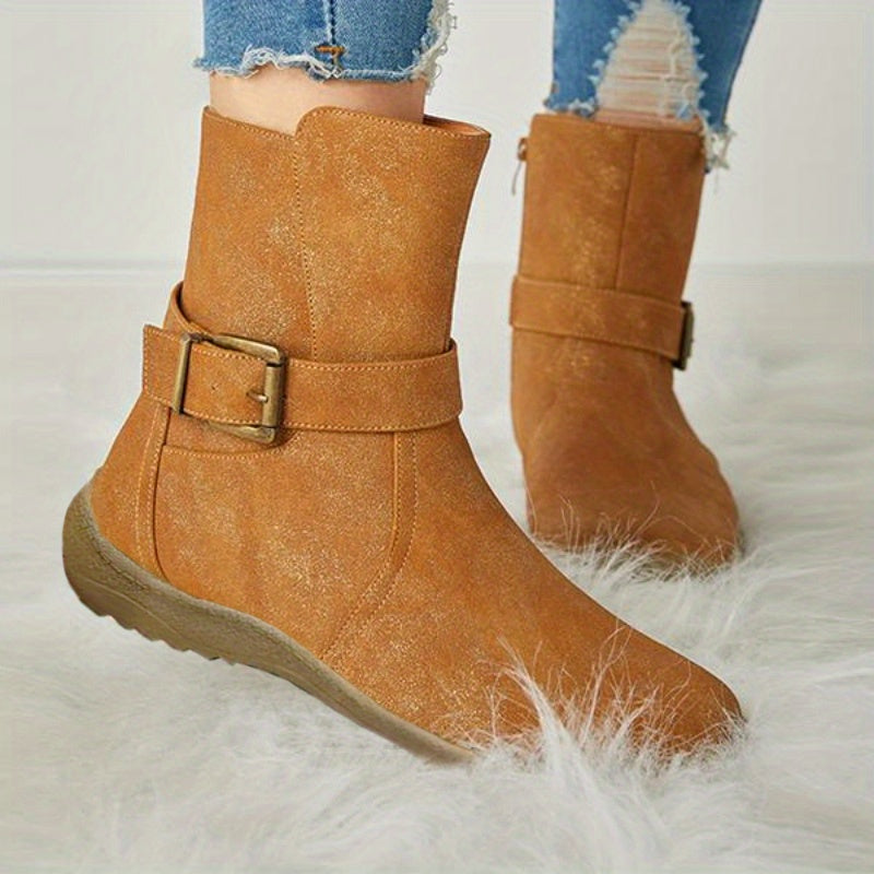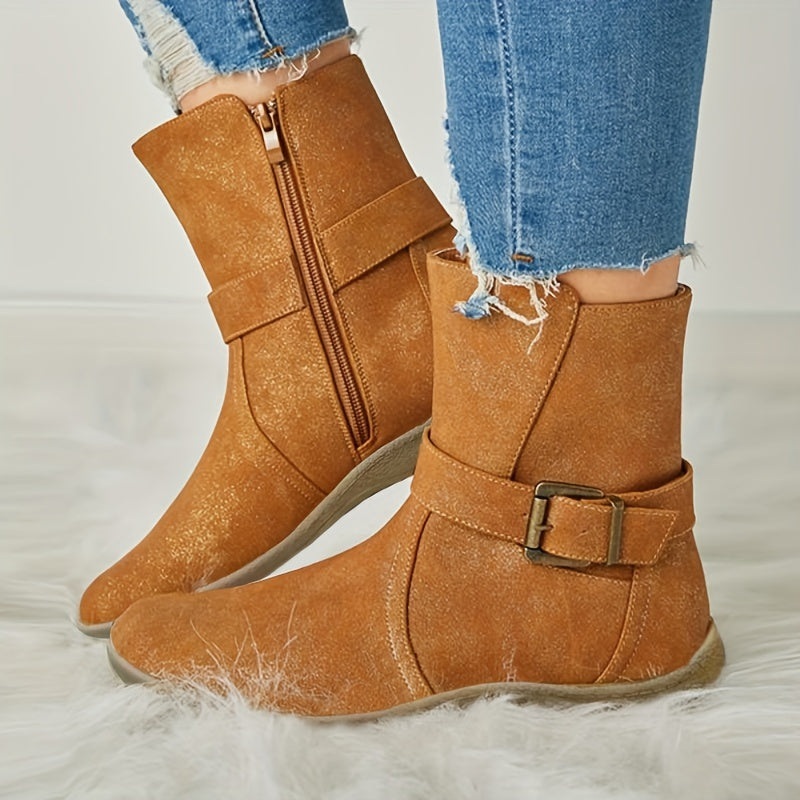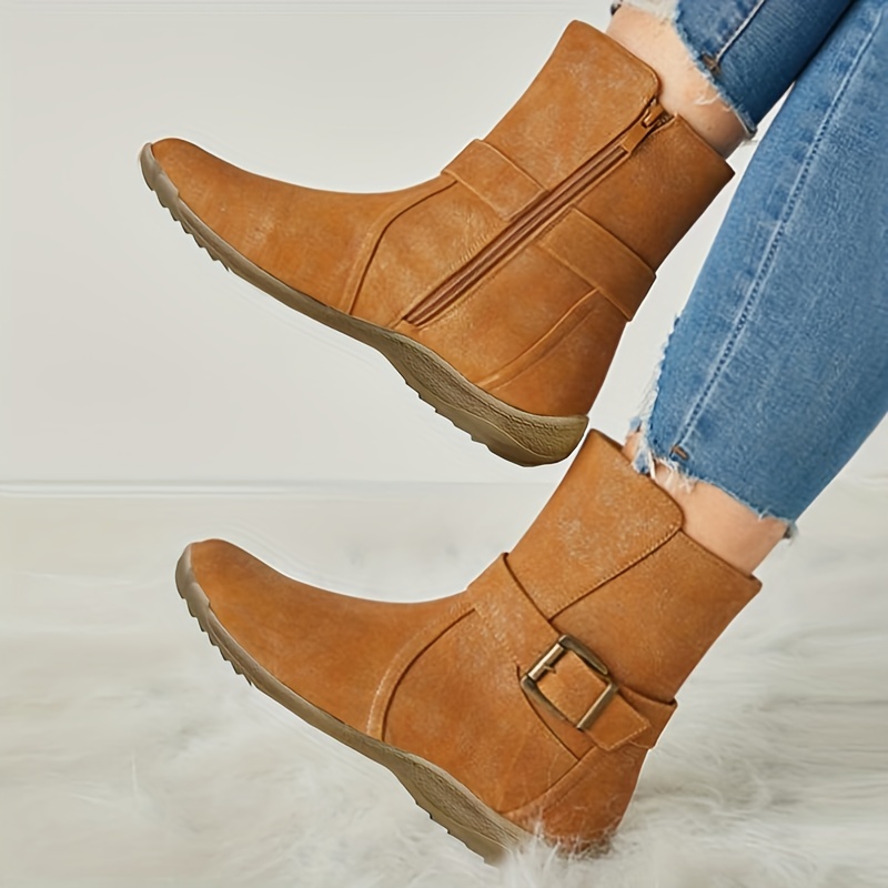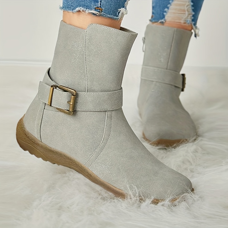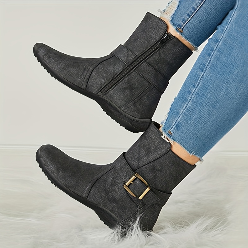Stylish Women's Ankle Boots with Buckle Strap and Side Zipper - Comfortable Round Toe Short Boots for Fashionable Look