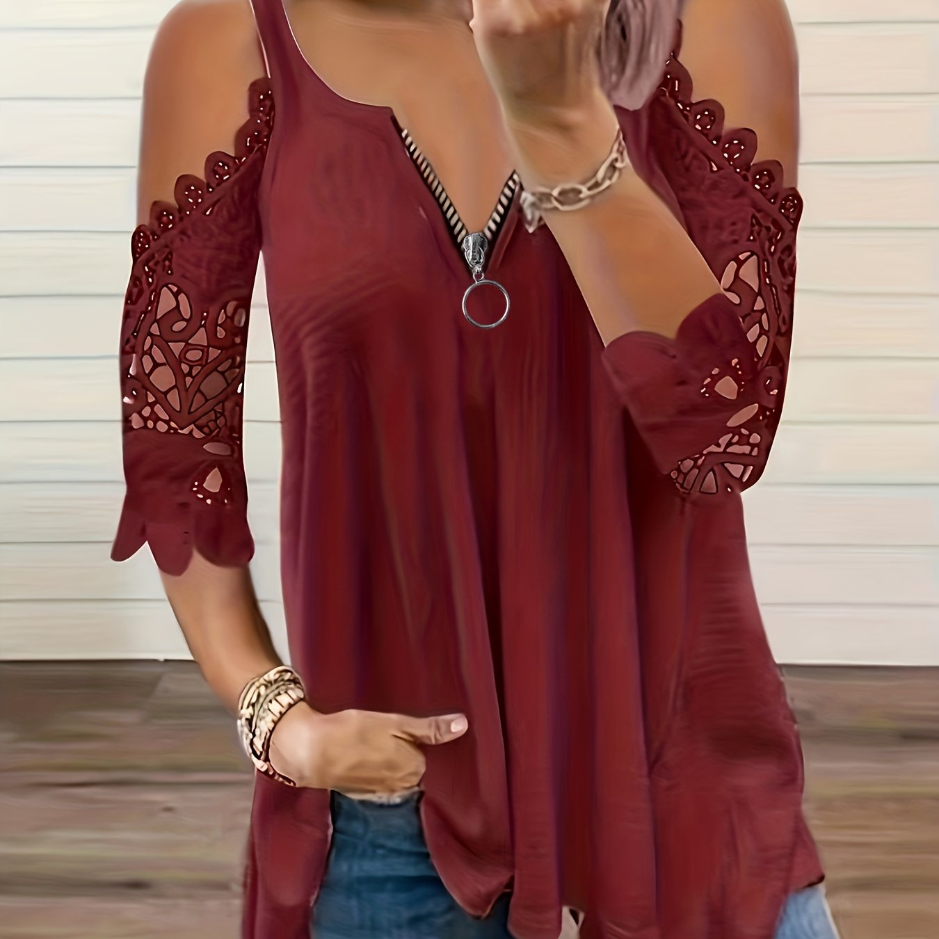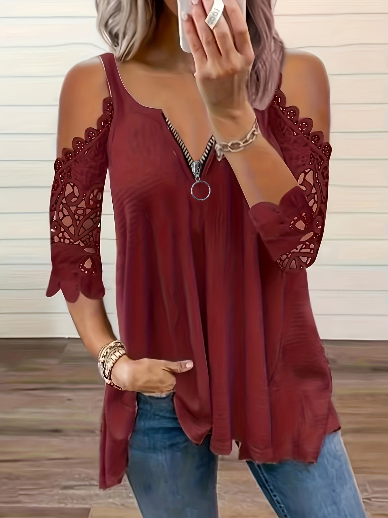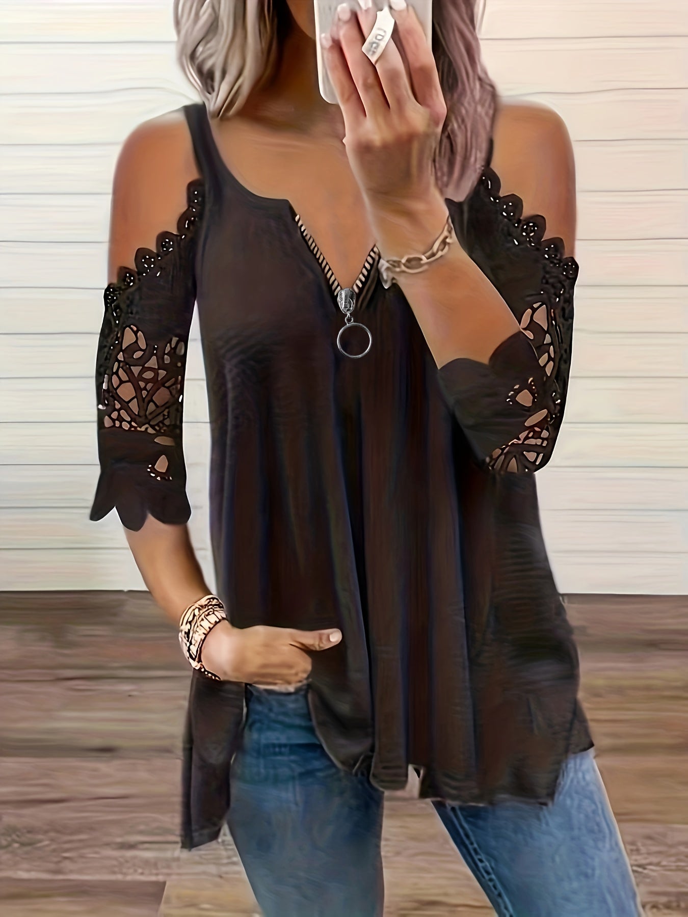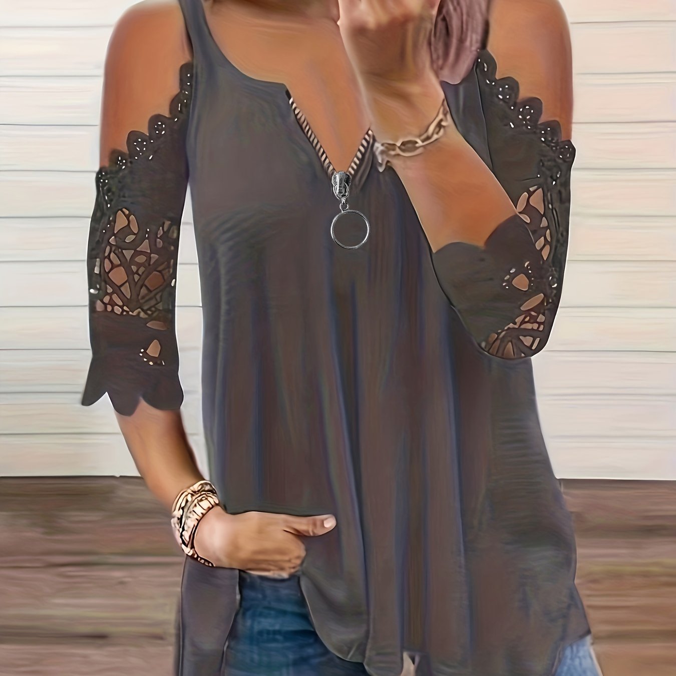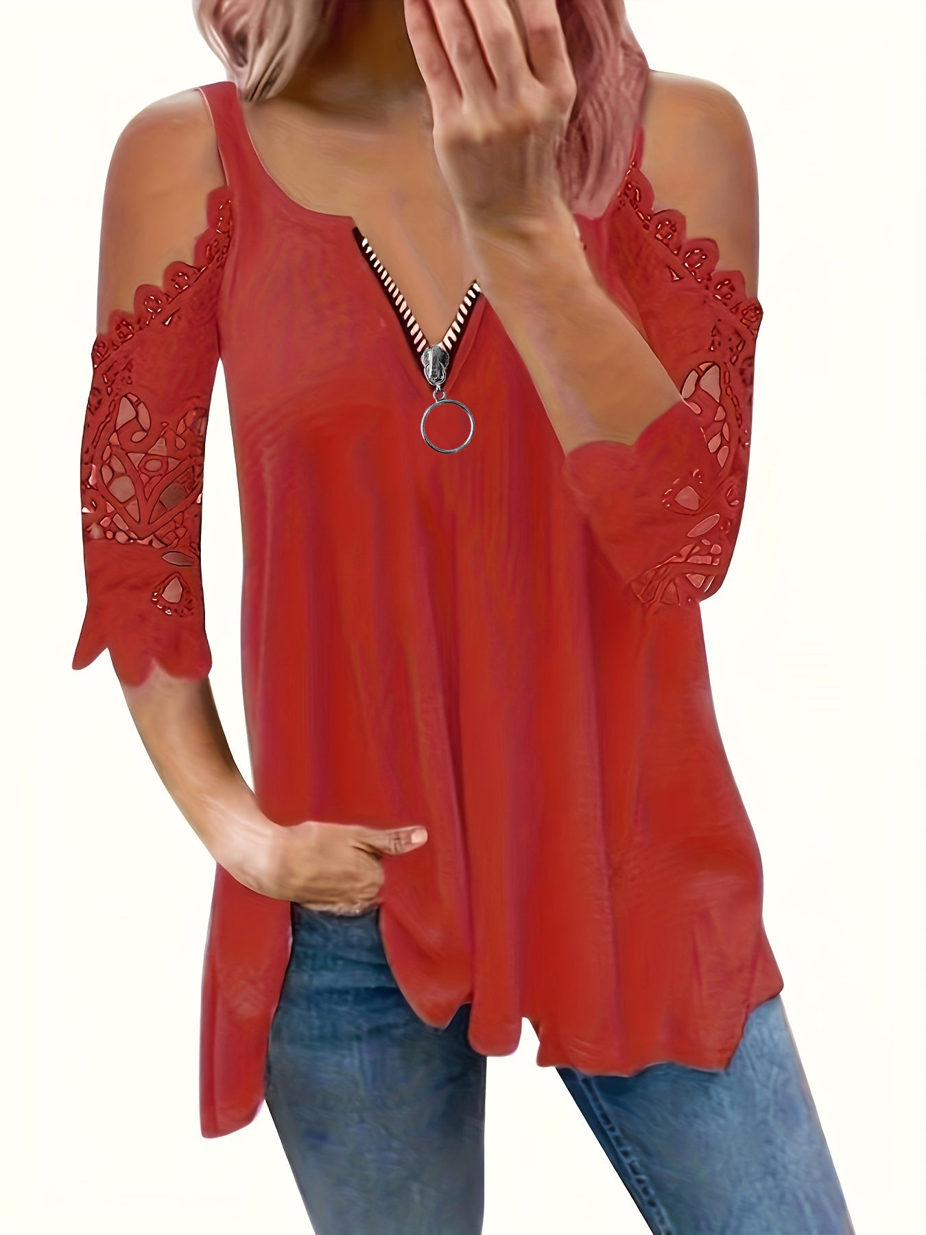 · Stylish Design: Featuring a trendy cold shoulder and lace stitching, this top is perfect for fashion-forward women.
