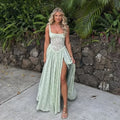 Suninheart Green Summer Maxi Dress Sexy High Slit Mesh Embroidered Dress for Women Slim Elegant Holiday Party Dress Wholesale