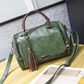 Tassel Decor Women's Large Capacity Shoulder Bag Fashion Zipper Crossbody Bag With Removable Strap Boston Handbag