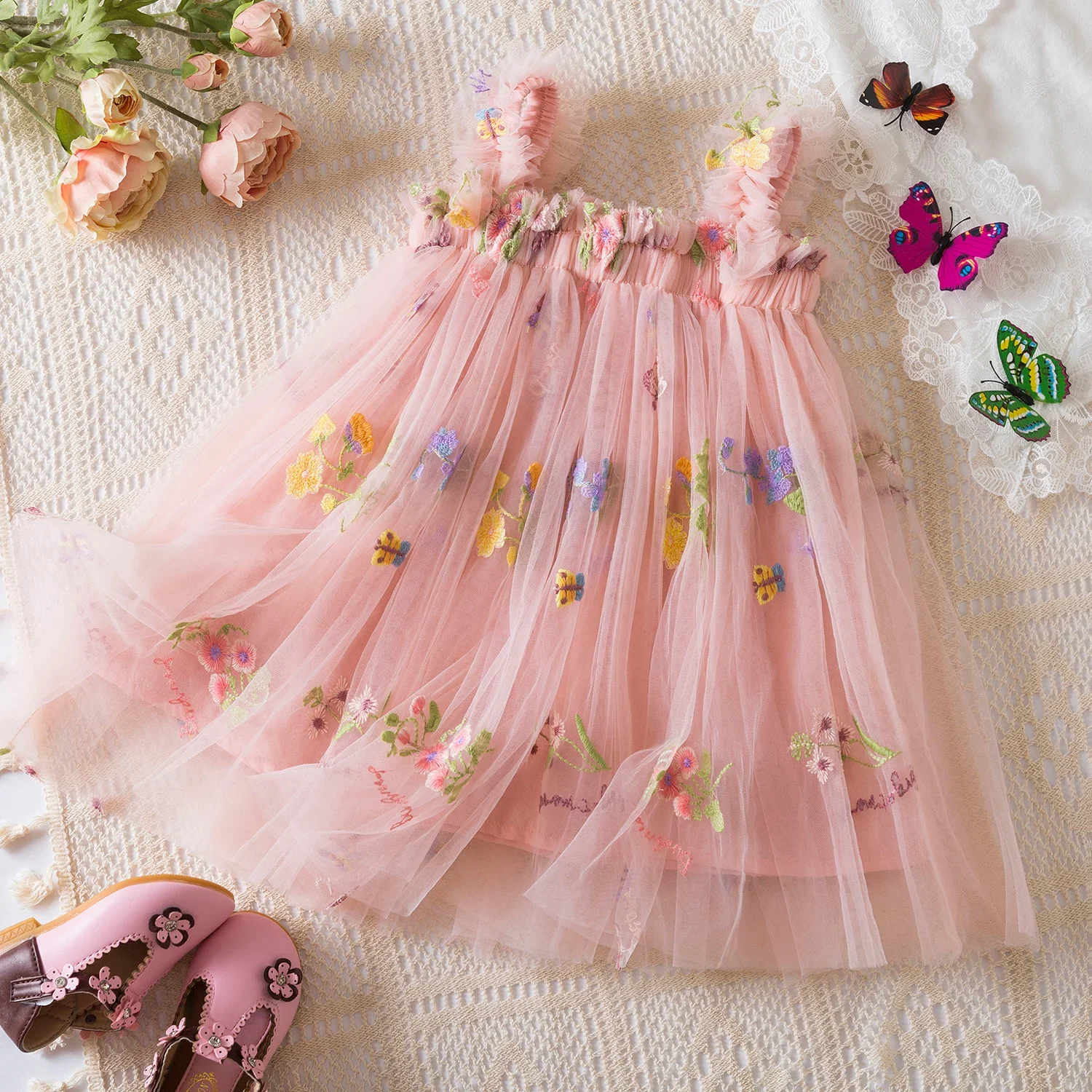 Toddler Girl Princess Dress Baby Flower Tulle Costume Kids New Summer Sleeveless Casual Dresses Newborn Birthday Party Clothes