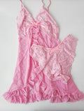 Toucheart Contrast Lace Nightgown Deep V Backless Bow Slip Dress Women Sexy See-Through Slit Lace Pajama 2-Piece Set With Thong