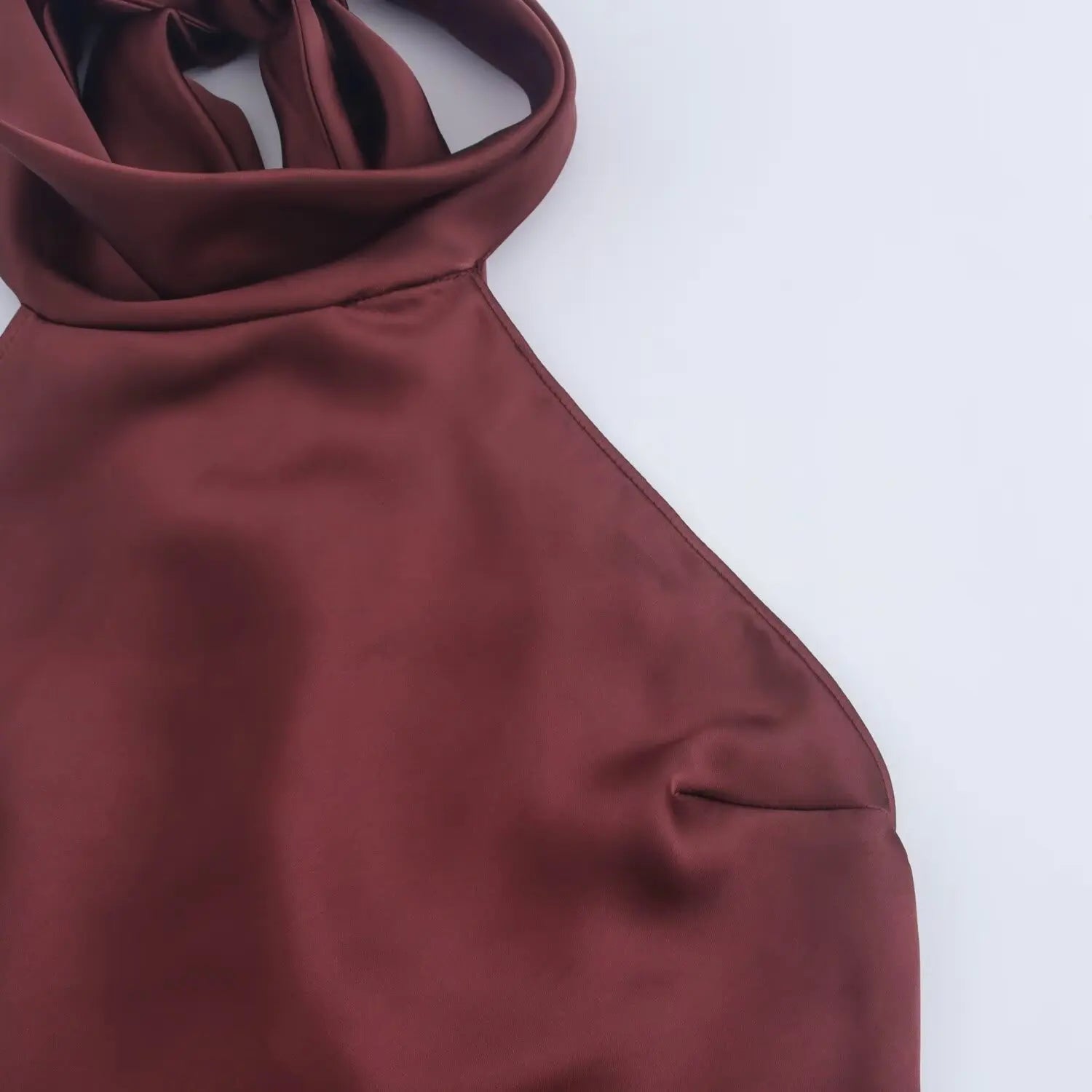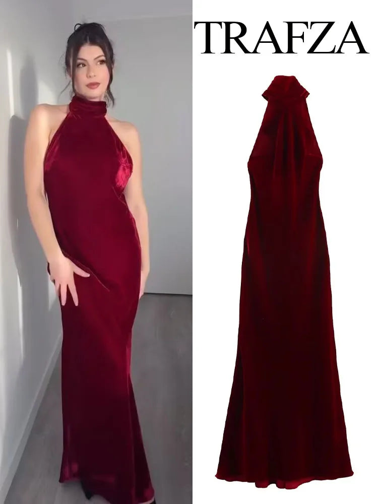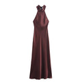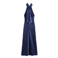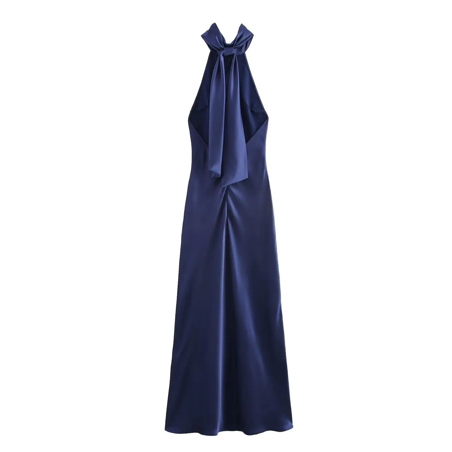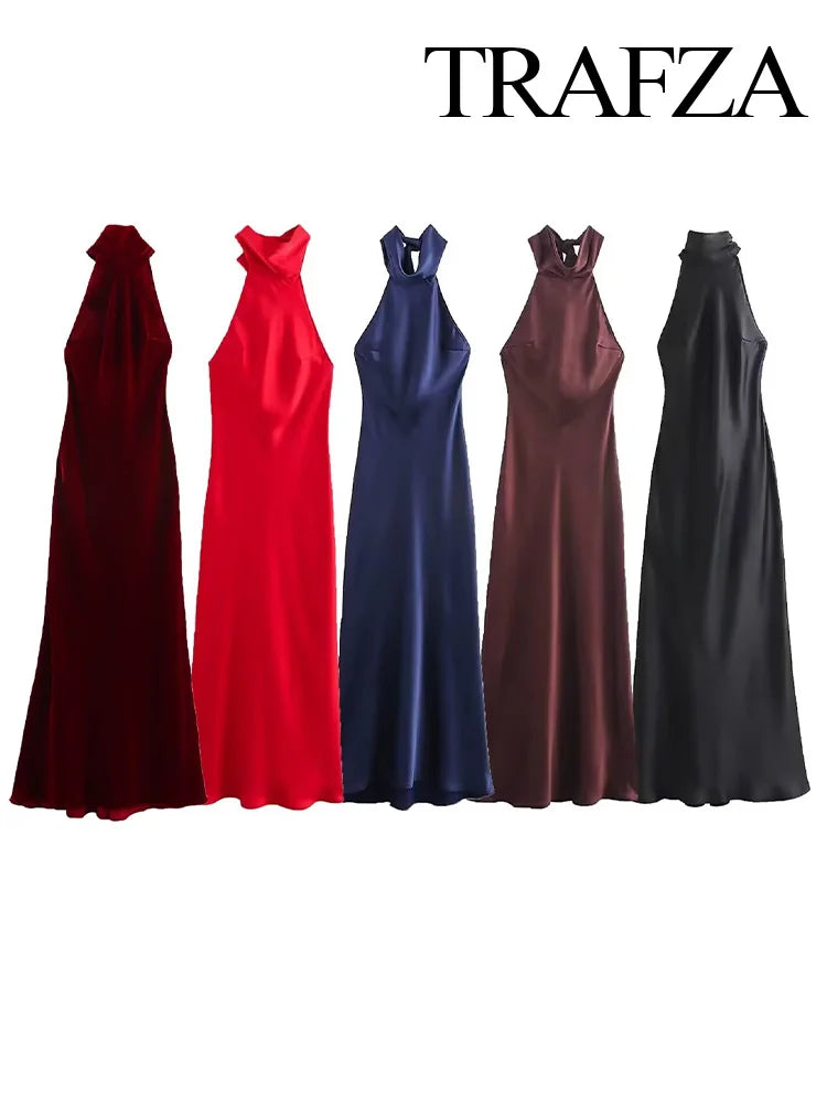 TRAFZA Women Fashion Dress Solid Sleeveless Backless Bow Decoration Zipper Female Summer Elegant Slim Long Dresses 2 Color