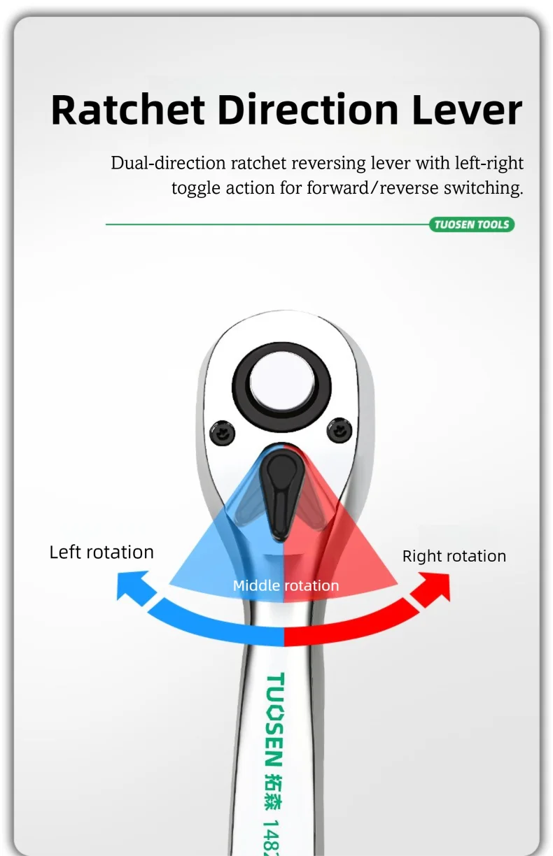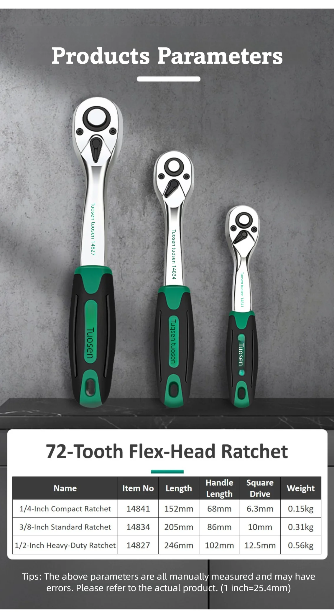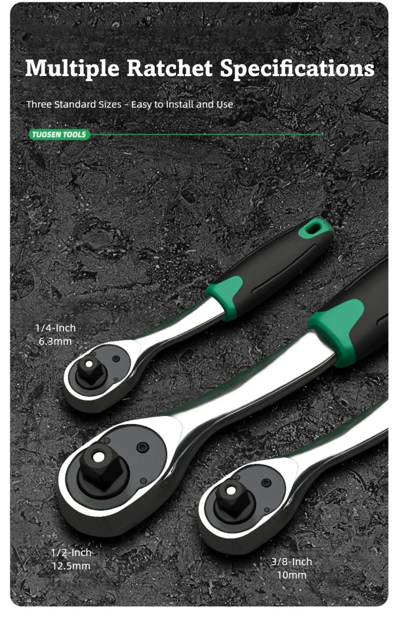TUOSEN 3 size 72-Tooth Quick Release Ratchet Wrench- Multi-Function Hand Tool for Auto Repair & Maintenance