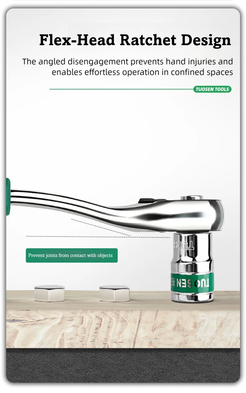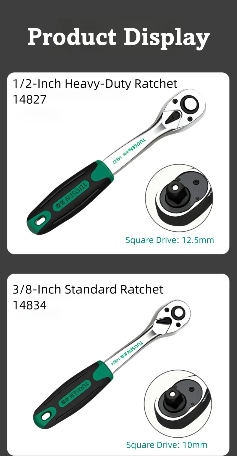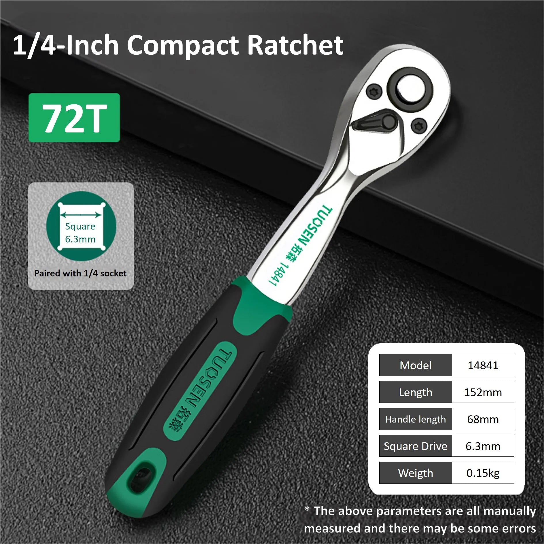 TUOSEN 3 size 72-Tooth Quick Release Ratchet Wrench- Multi-Function Hand Tool for Auto Repair & Maintenance