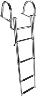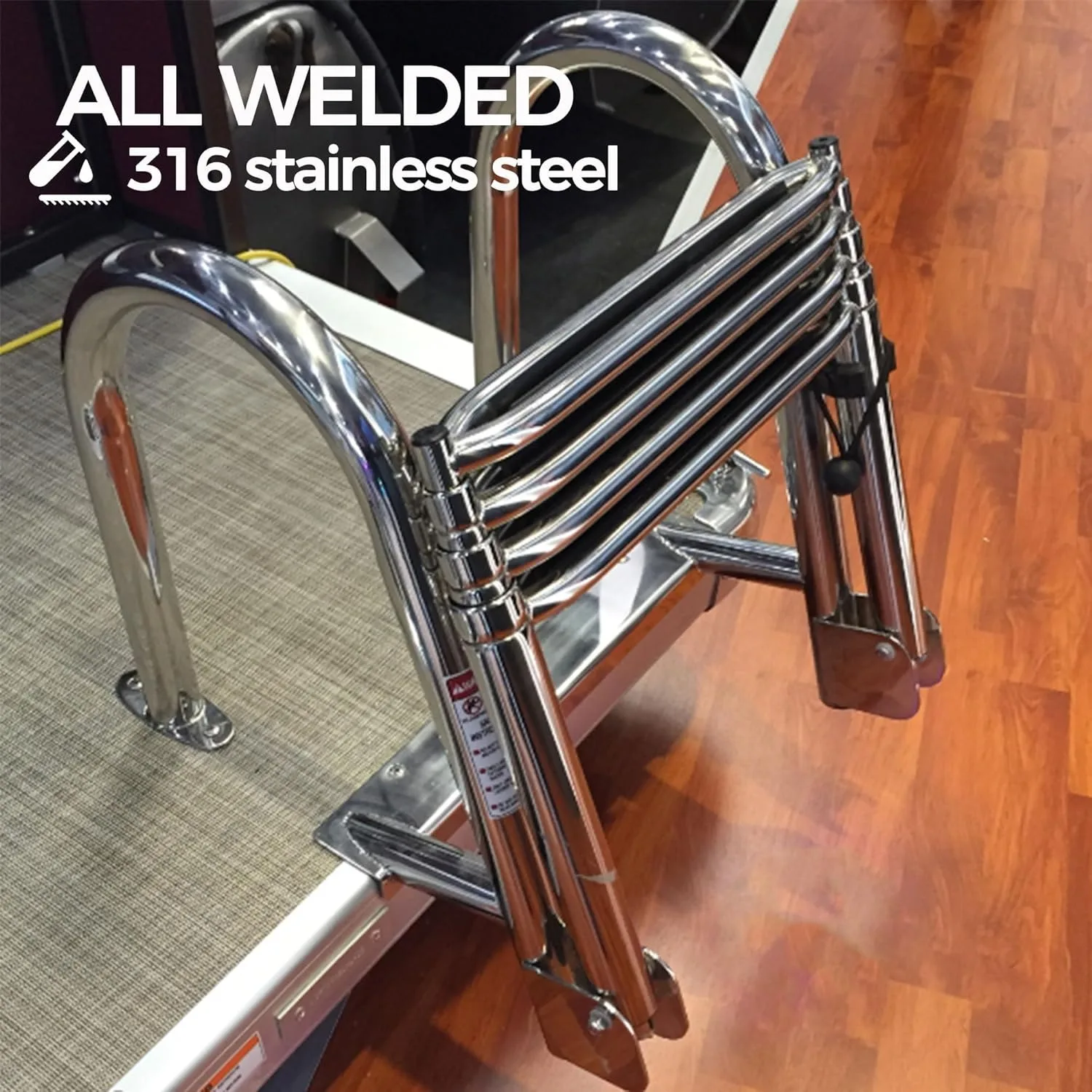 [United States in Stock] Marine 4 Step Boat Ladder, 304 Stainless Steel Telescoping Folding Pontoon Boat Ladder Dock Swim Ladder
