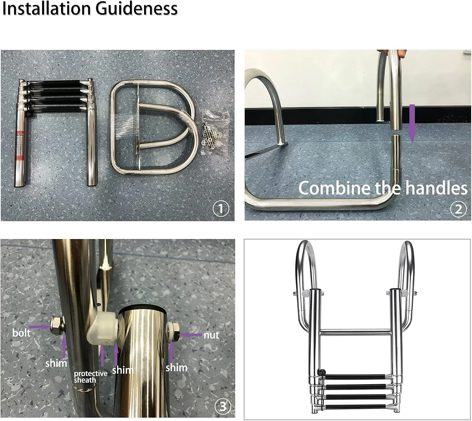 3.Safety and Comfort: With a comfortable handrail design and non-slip steps, this stainless steel ladder ensures a secure and easy boarding experience, reducing the risk of accidents and providing peace of mind.