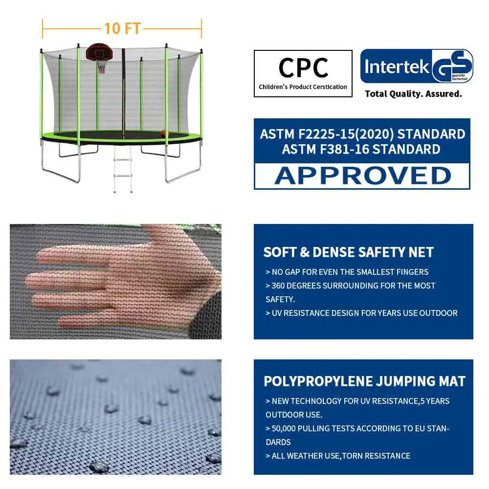 US Warehouse Delivery Outdoor 10ft Trampoline for Kids and Adult Jumping