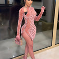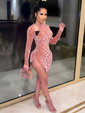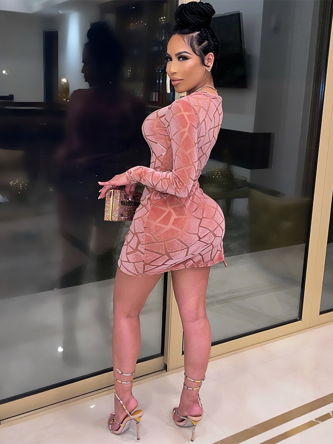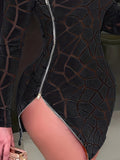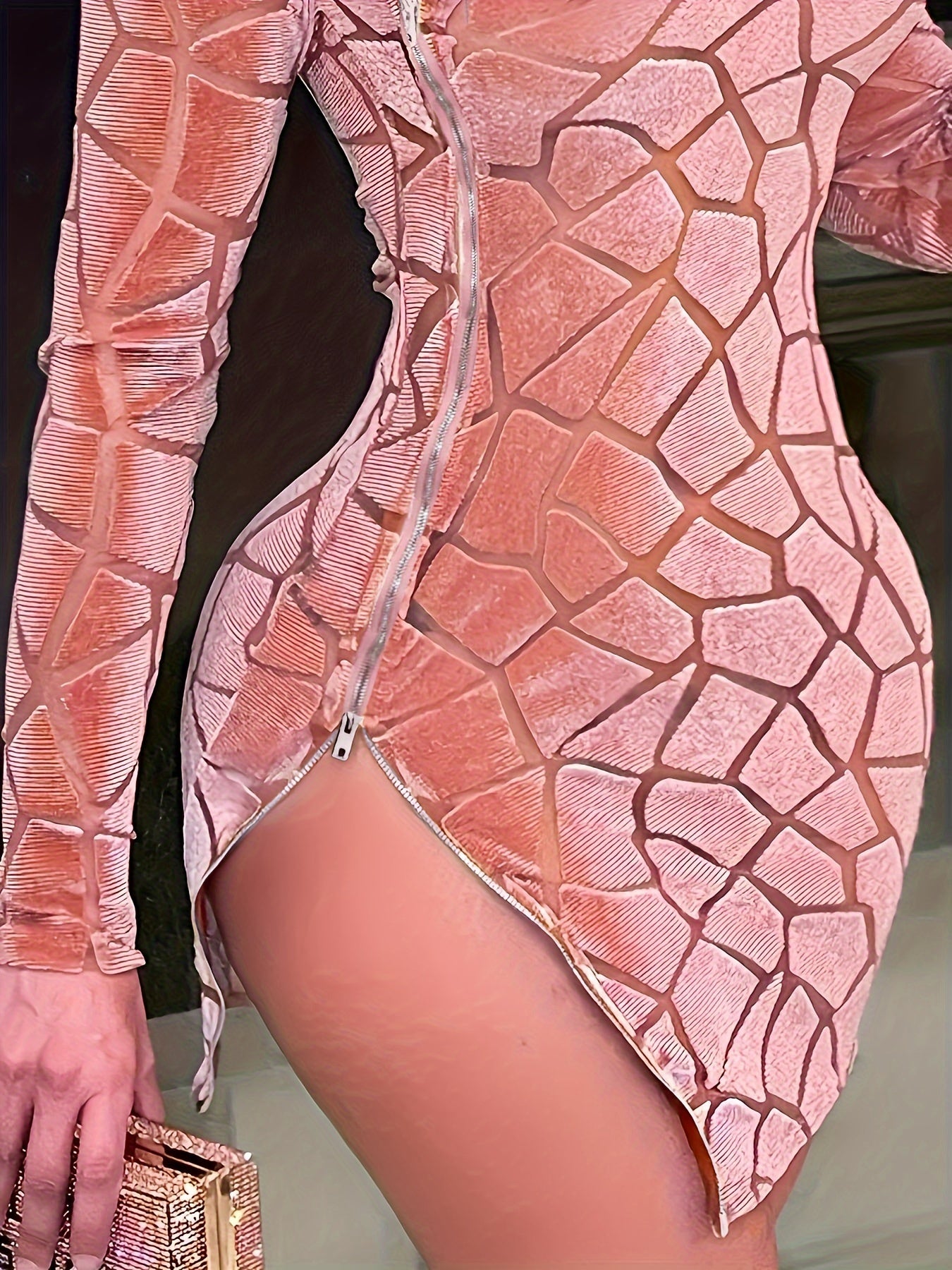 [Velvet Bodycon Dress] Plus Size Velvet Bodycon Dress - Semi Sheer Long Sleeve High Stretch Sexy Women's Dress