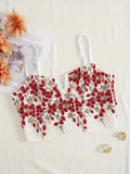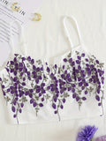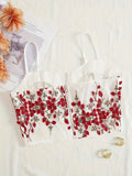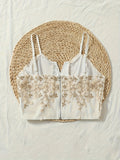 Vibrant Coquette Floral Embroidery V-Neck Slingback Tank Top - Elegant Summer Essential with Chain Details, Non-Stretch Polyester Fabric, Hand Wash Only, Solid Color Random Printing - Perfect for Young Women