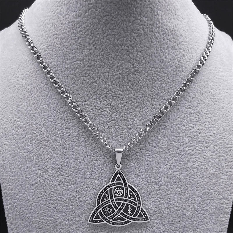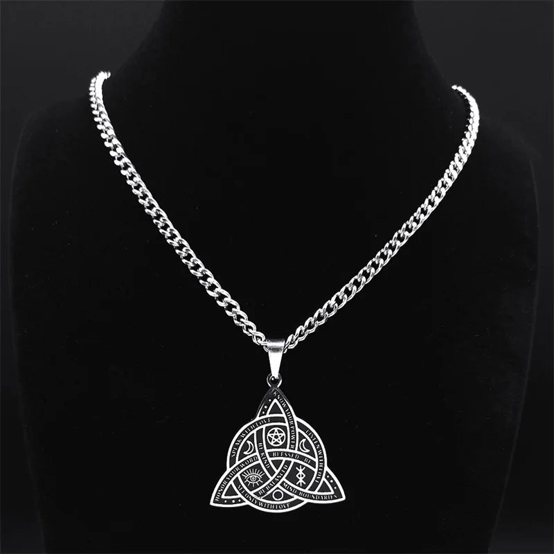 Viking Witch Celtic Knot Pendant Necklace Stainless Steel Men Chain Odin Gothic Necklace Protection Amulet Jewelry nudo de bruja