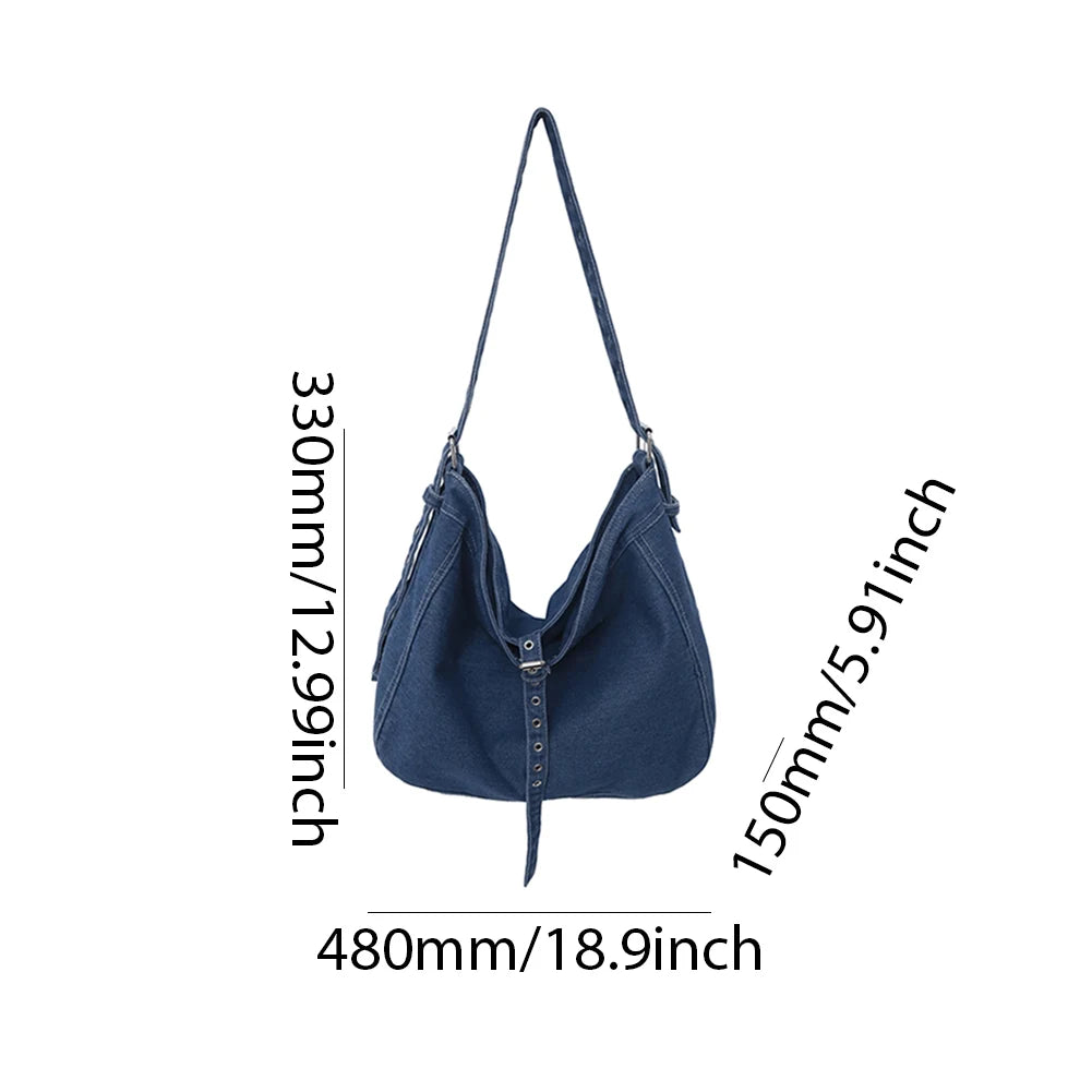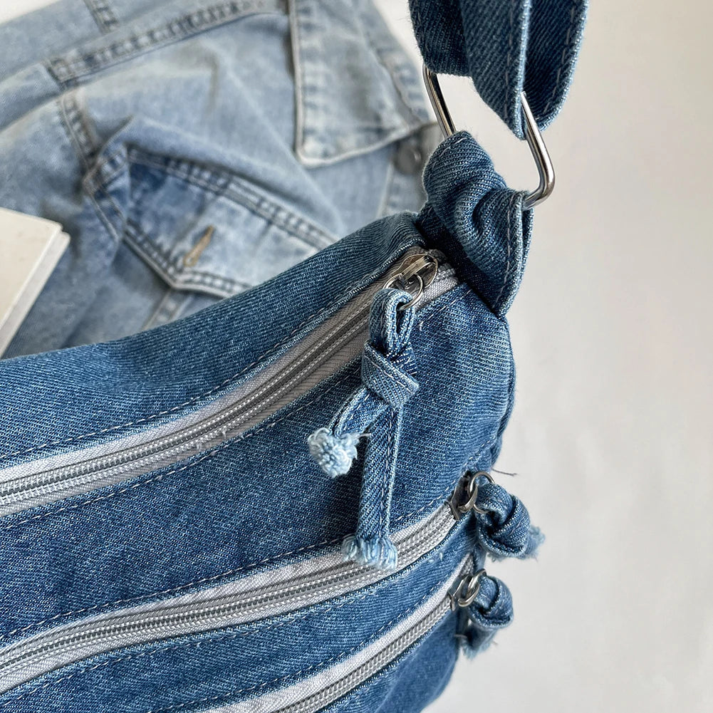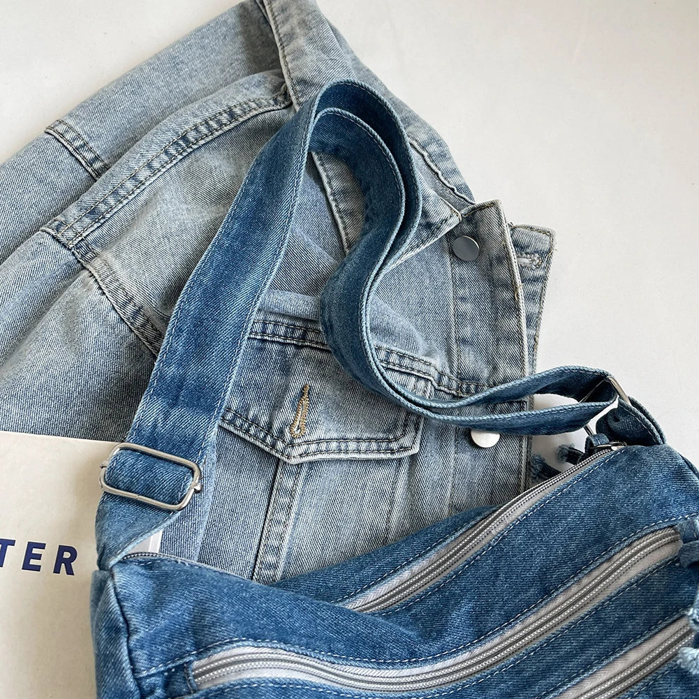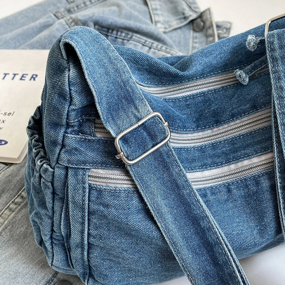 Vintage Denim Shoulder Bag Women's Large Capacity Messenger Bag Multi-pockets Satchel Bags Adjustable Strap Ladies Crossbody Bag