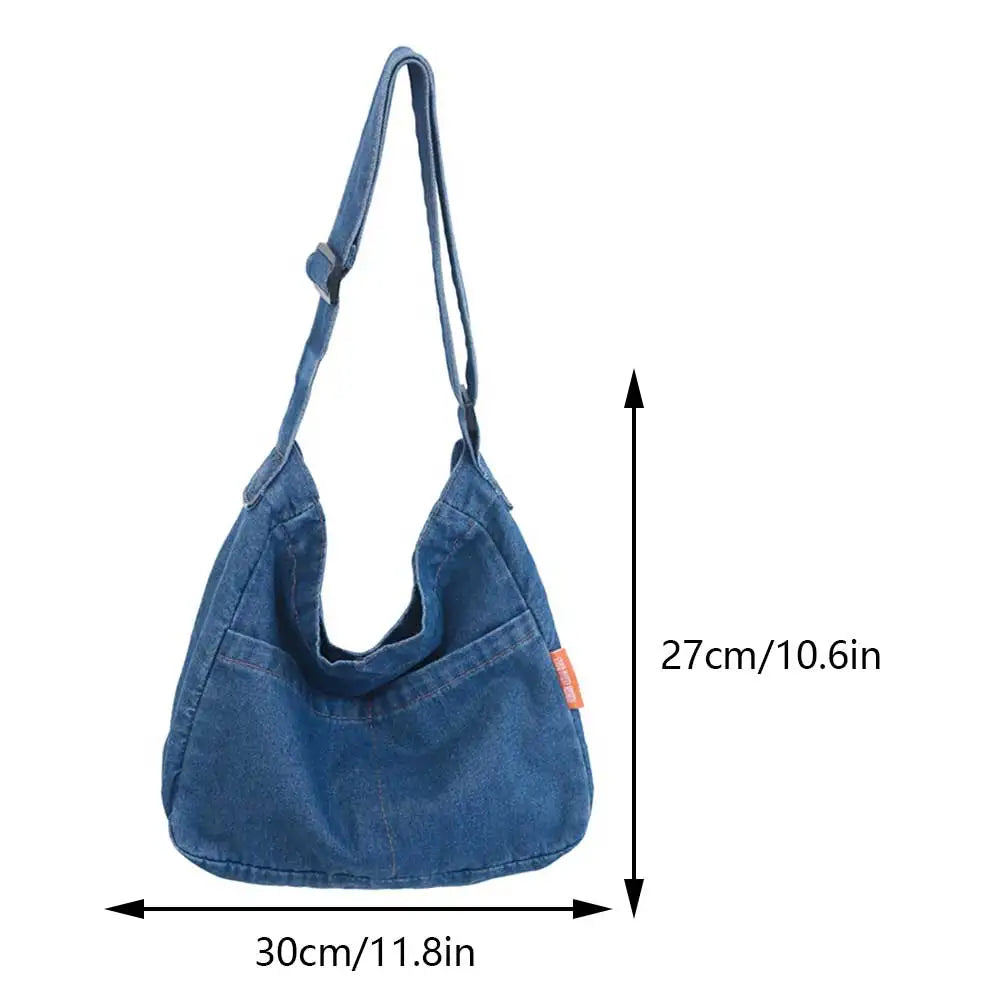 1.Premium Denim Fabric: Crafted from high-quality denim, this fashion shoulder bag offers a soft, comfortable touch and is easy to maintain. Its durable material ensures long-lasting use while adding a touch of retro style to your wardrobe. Specification: Origin: Mainland China Shape: Satchels Main Material: Denim Lining Material: Polyester Size: 300.00x210.00x140.00mm/11.81x8.27x5.51inch Place Of Origin: HE BEI Province