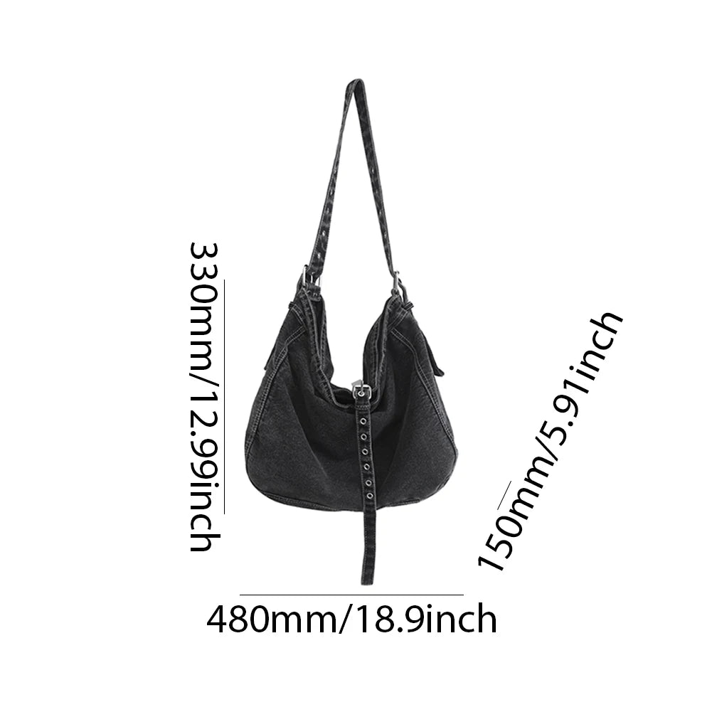 Women Denim Chic Hobo Bag Large Capacity Casual Messenger Bag Adjustable Strap Vintage Satchel Bag Multi-pockets Retro Sling Bag Features: