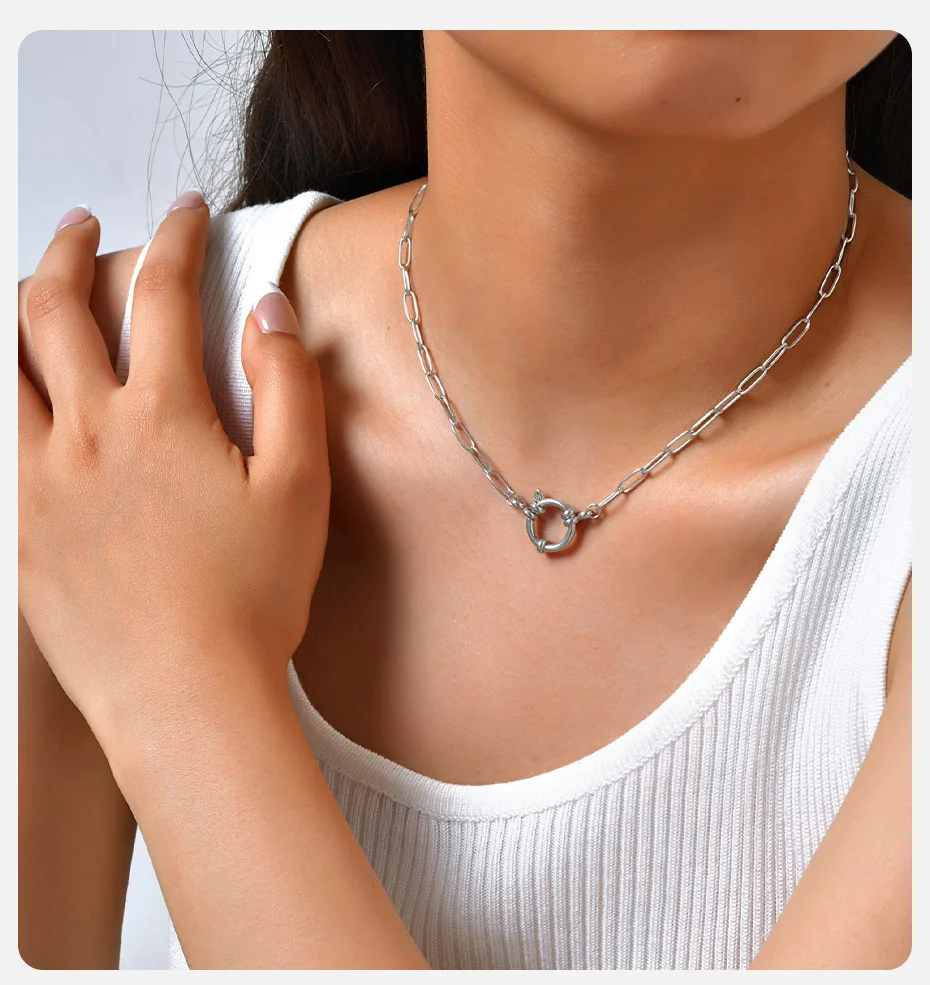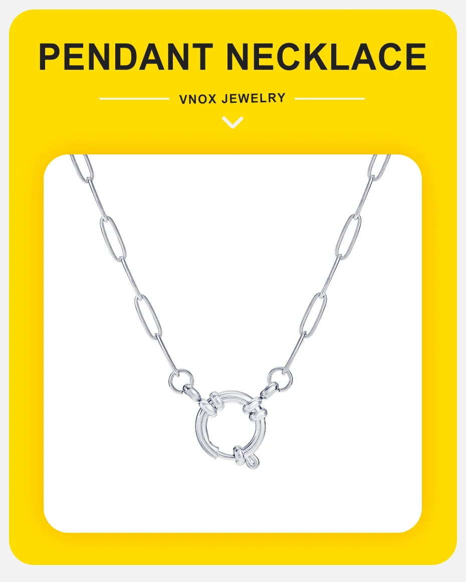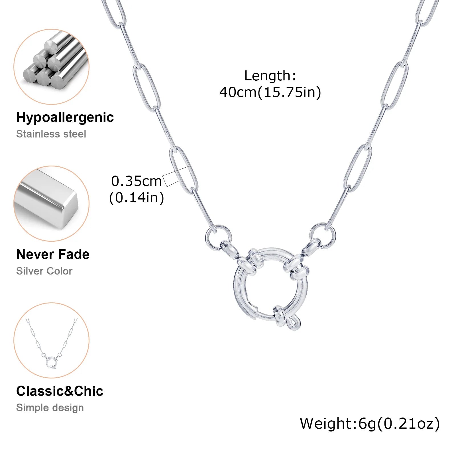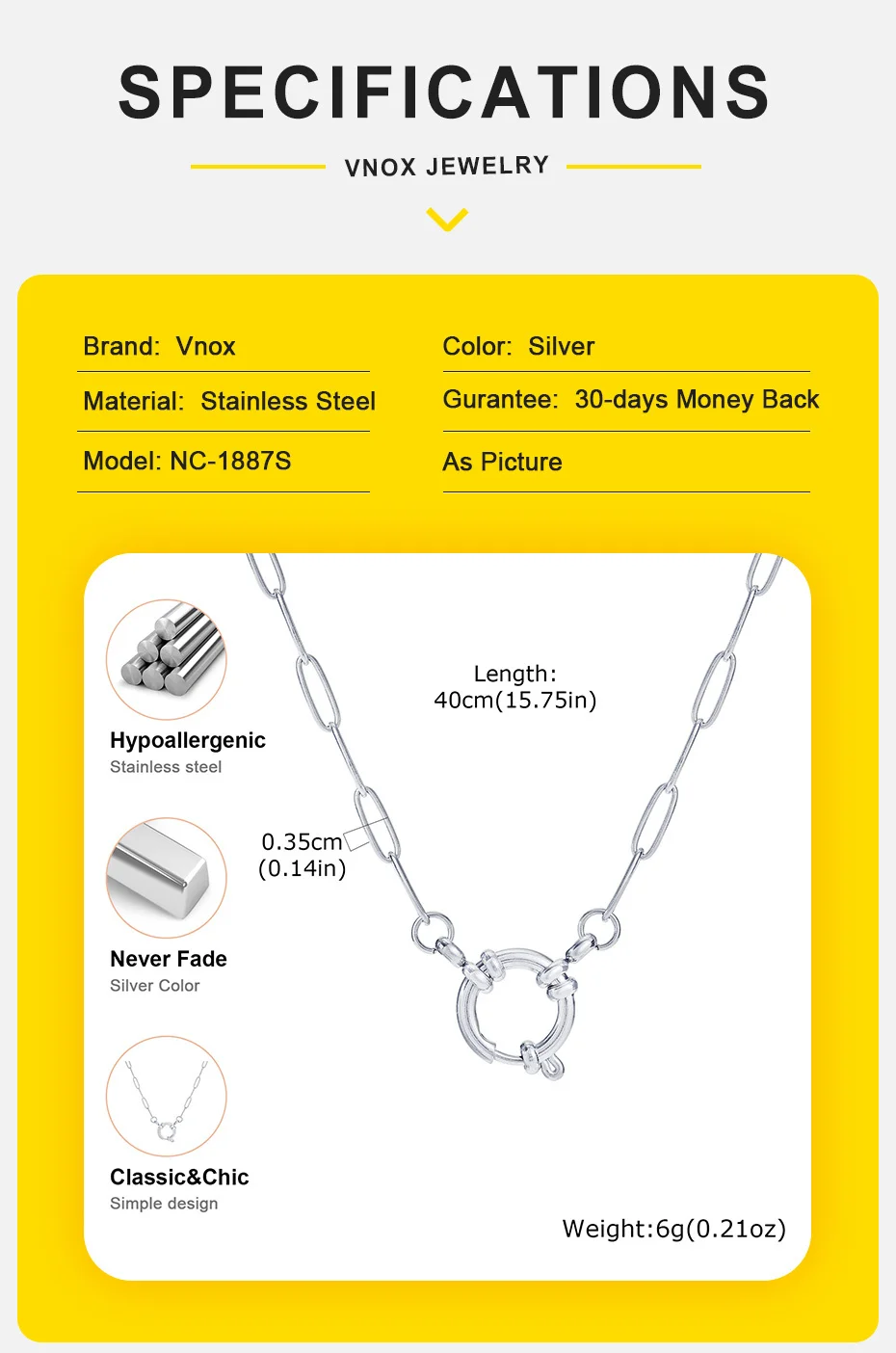 Vnox 2 Color Rectangular Chain 40cm Necklaces For Women, Stainless Steel Round Buckle Pendant, Metal Choker Neck Jewelry Gifts