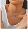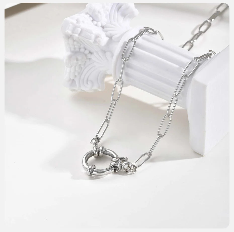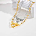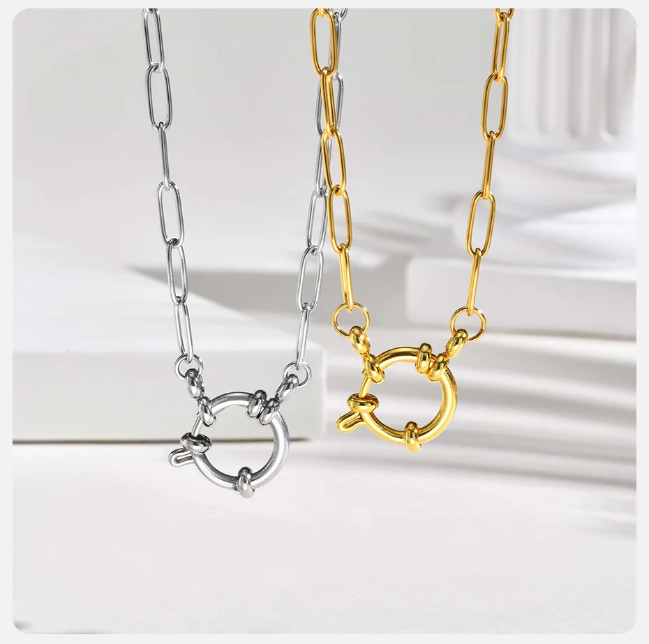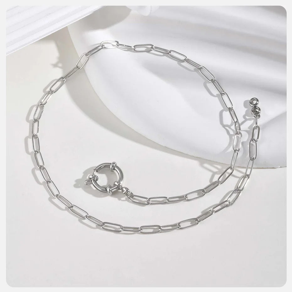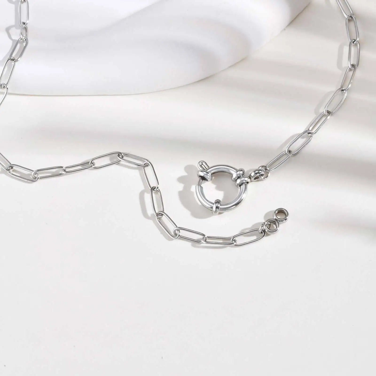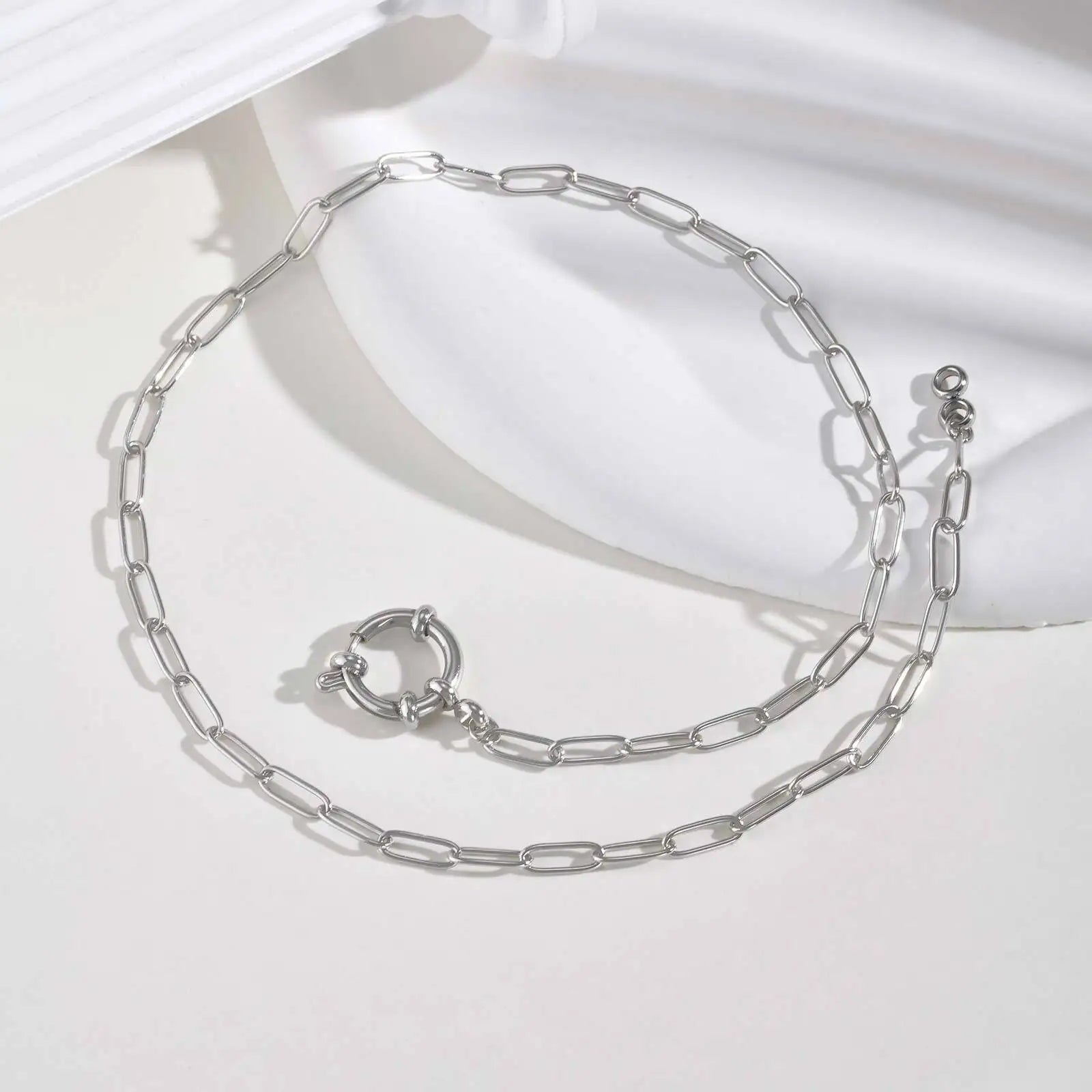 Vnox 2 Color Rectangular Chain 40cm Necklaces For Women, Stainless Steel Round Buckle Pendant, Metal Choker Neck Jewelry Gifts