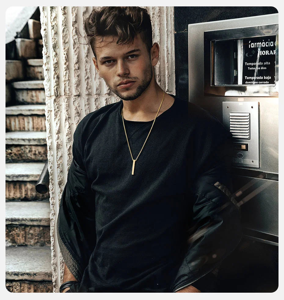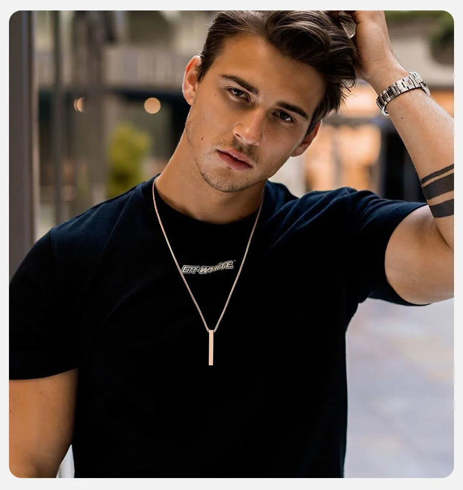 Vnox 5mm Pillar Necklace for Men Women, Stainless Steel 3D Bar Pendant, Minimalist Simple Casual Unisex Neck Collar