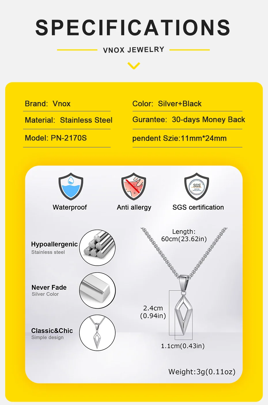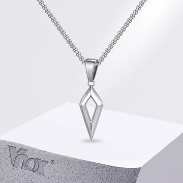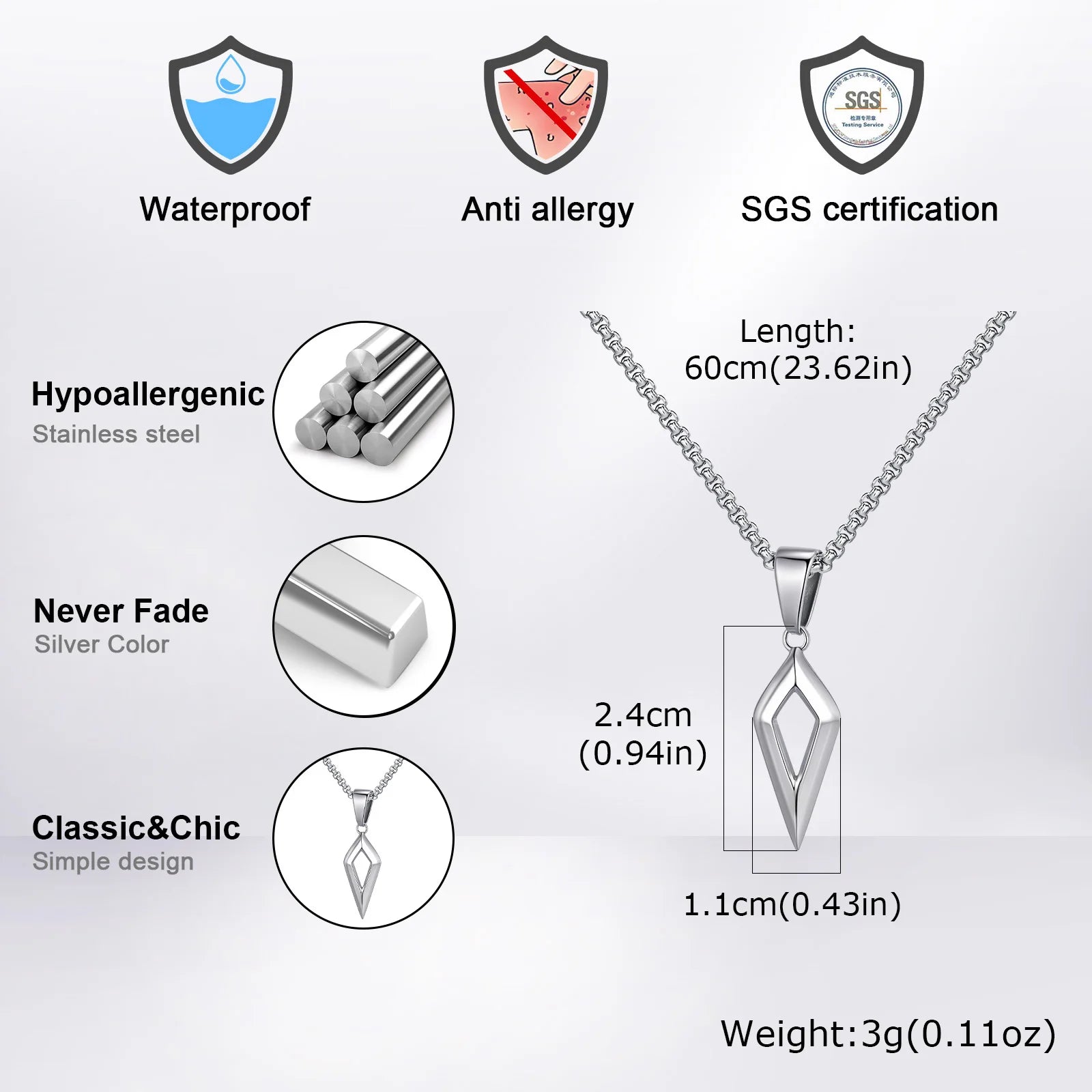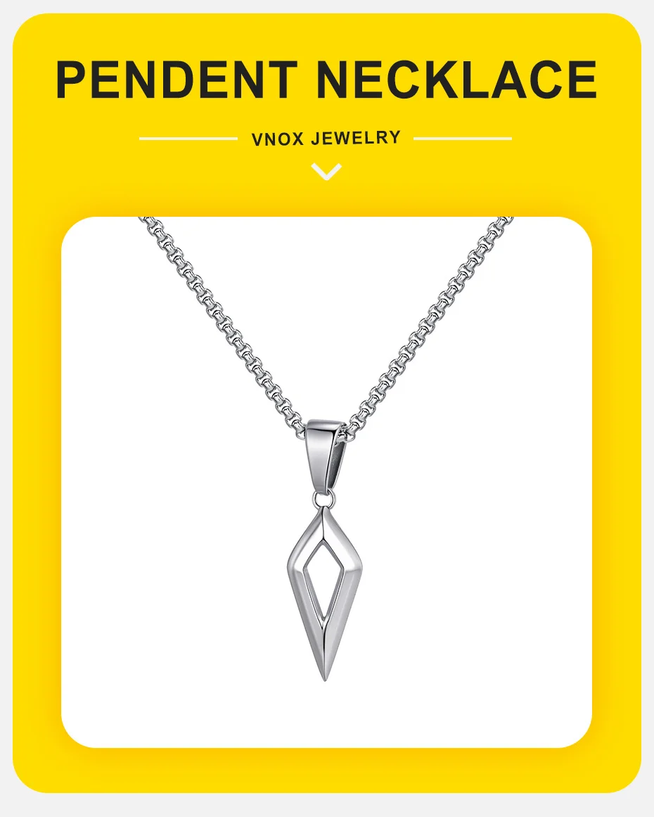 Vnox Beveled Four-pointed Star Pendant Necklaces, Stainless Steel Geometric Pendant Collar, Father's Day Birthday Jewelry Gifts