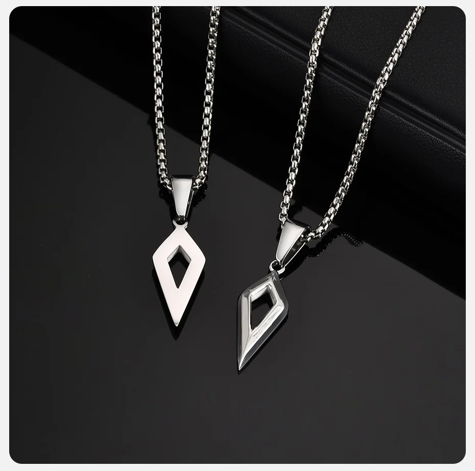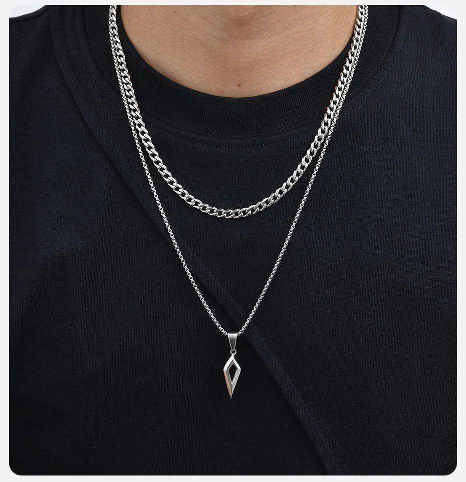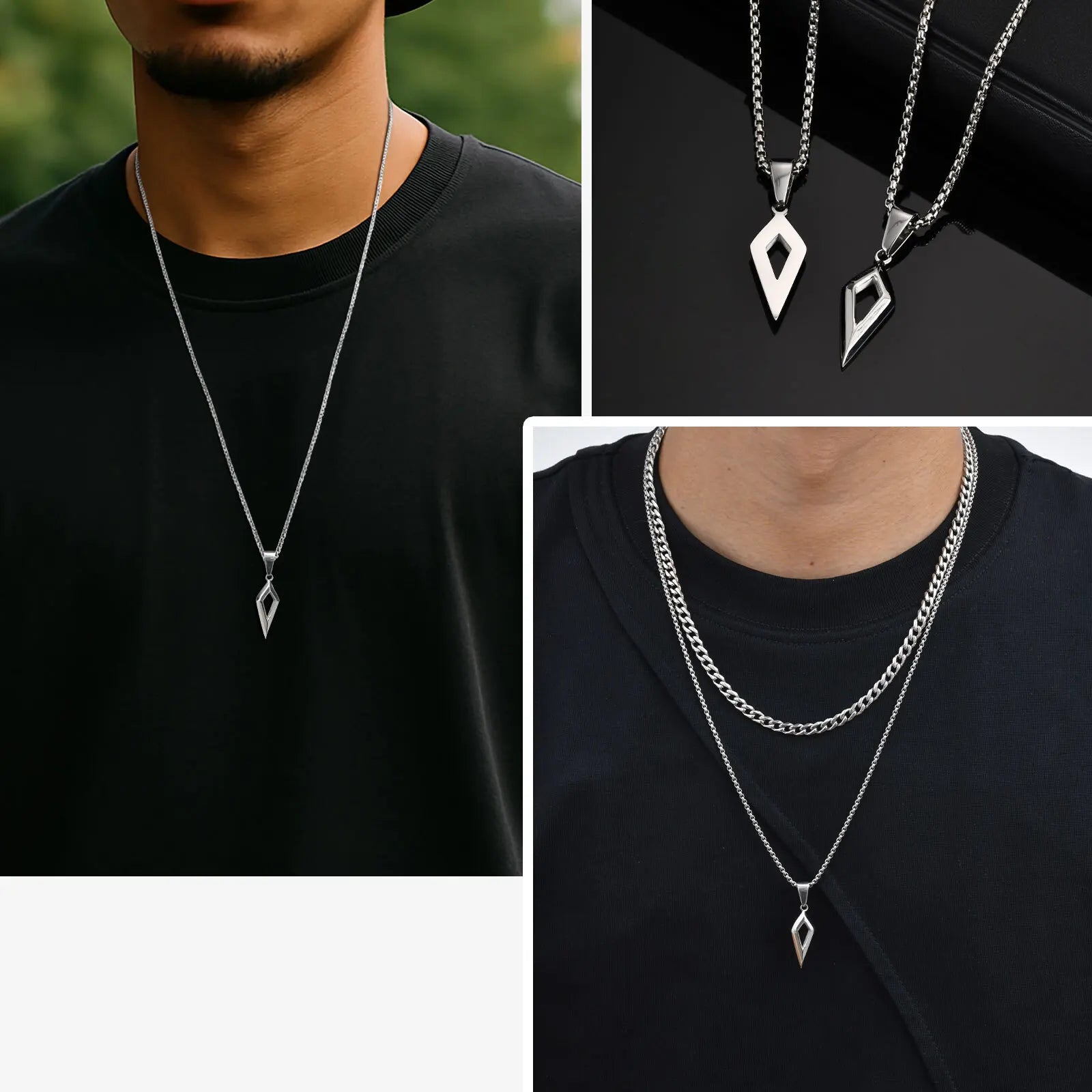Vnox Beveled Four-pointed Star Pendant Necklaces, Stainless Steel Geometric Pendant Collar, Father's Day Birthday Jewelry Gifts