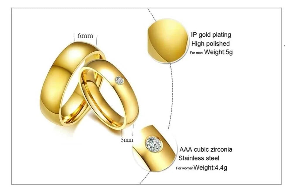 Vnox Classic Wedding Rings for Women Men Gold Color Stainless Steel Couple Band Anniversary Personalized Name Lovers Gift