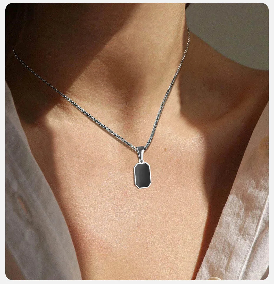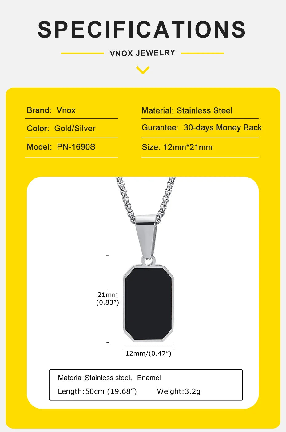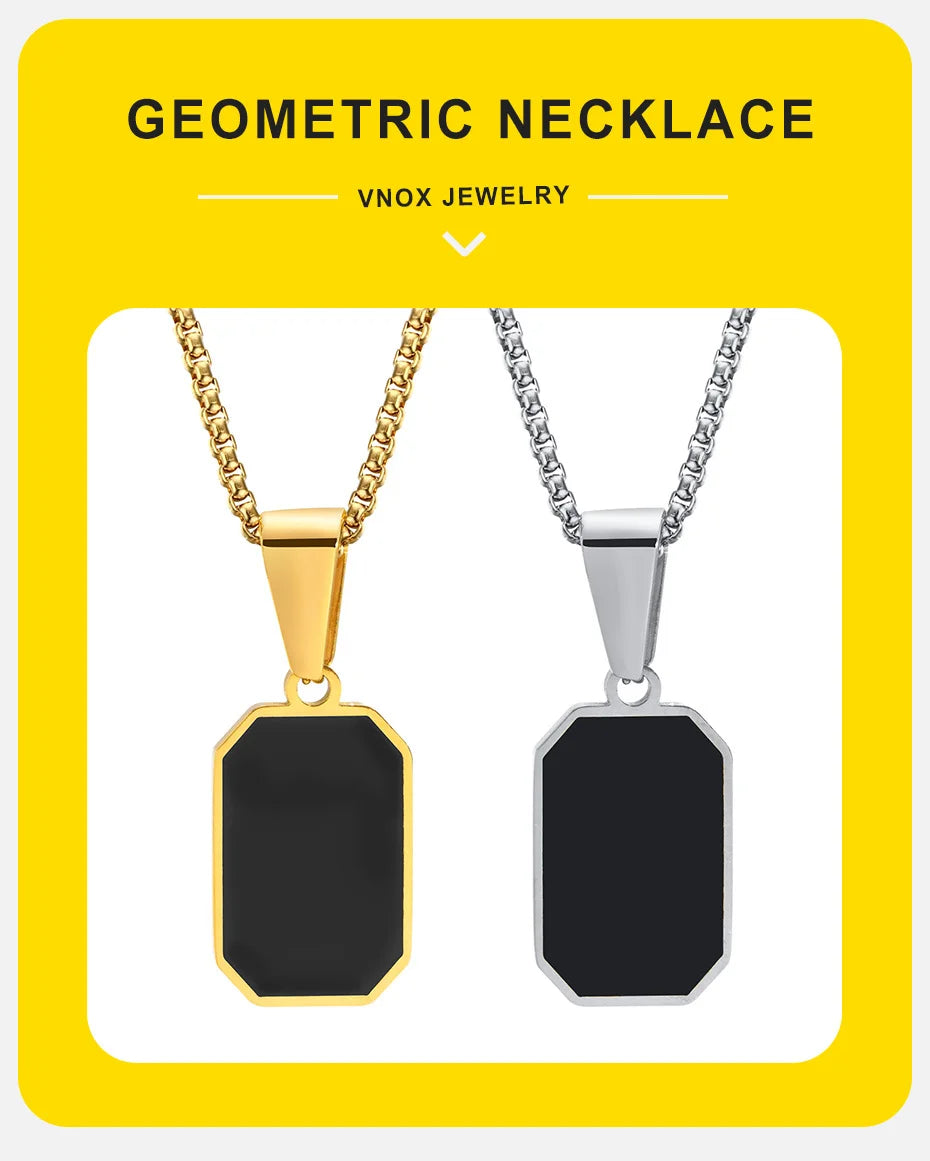 Vnox Geometric Necklace for Men Women, Stainless Steel Square Rectangle Pendant with Box Rope Chain, Unisex Casual Collar