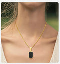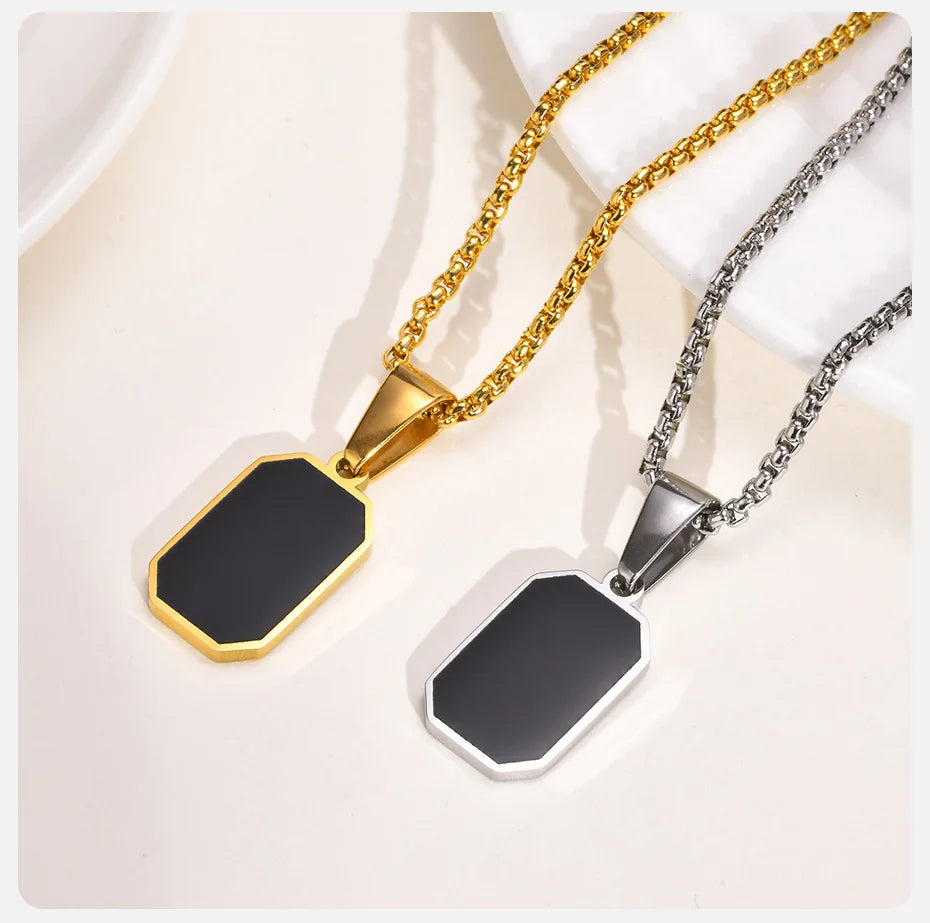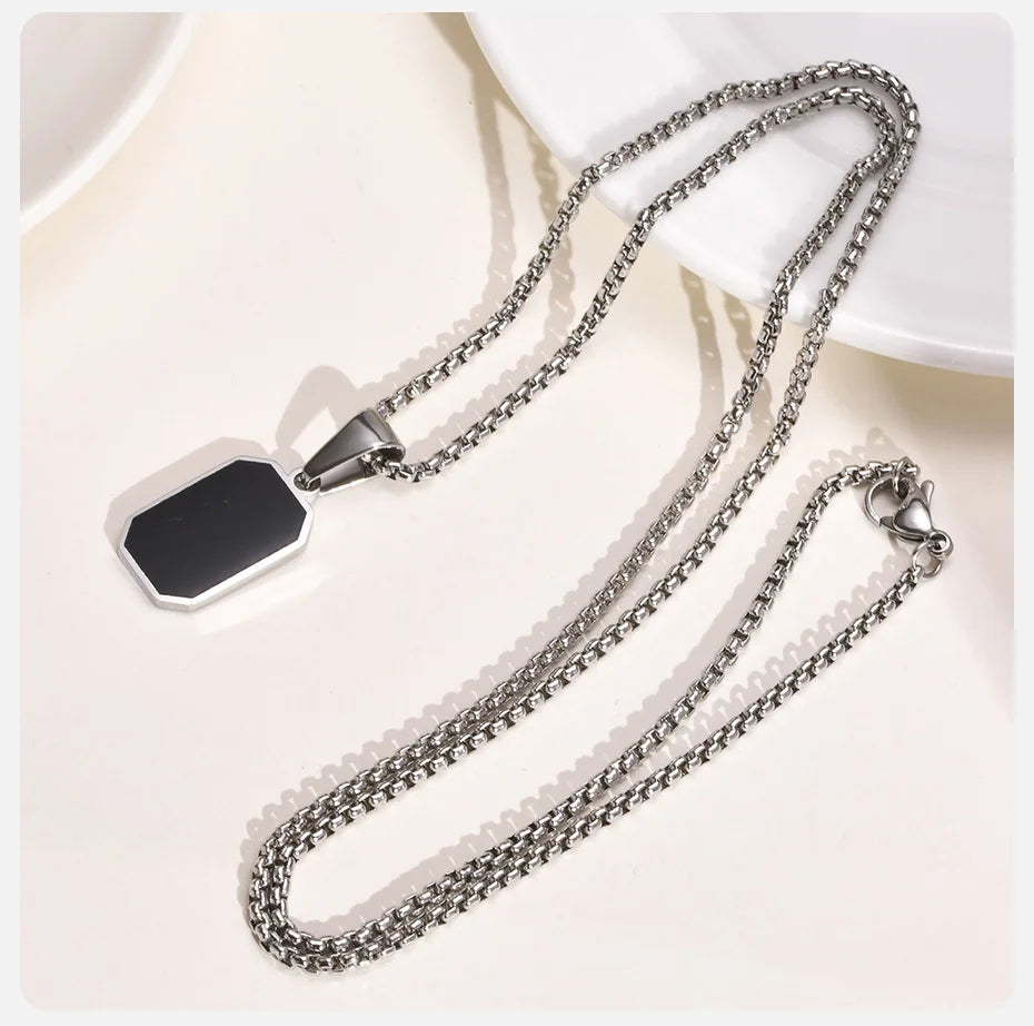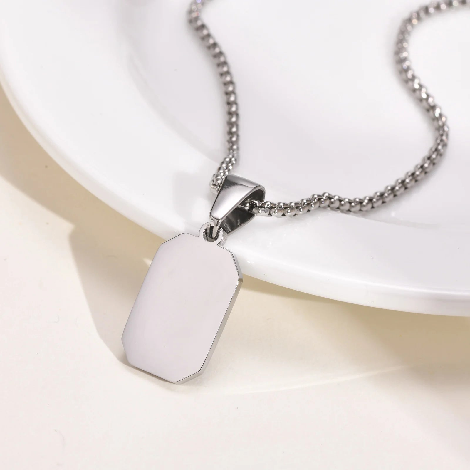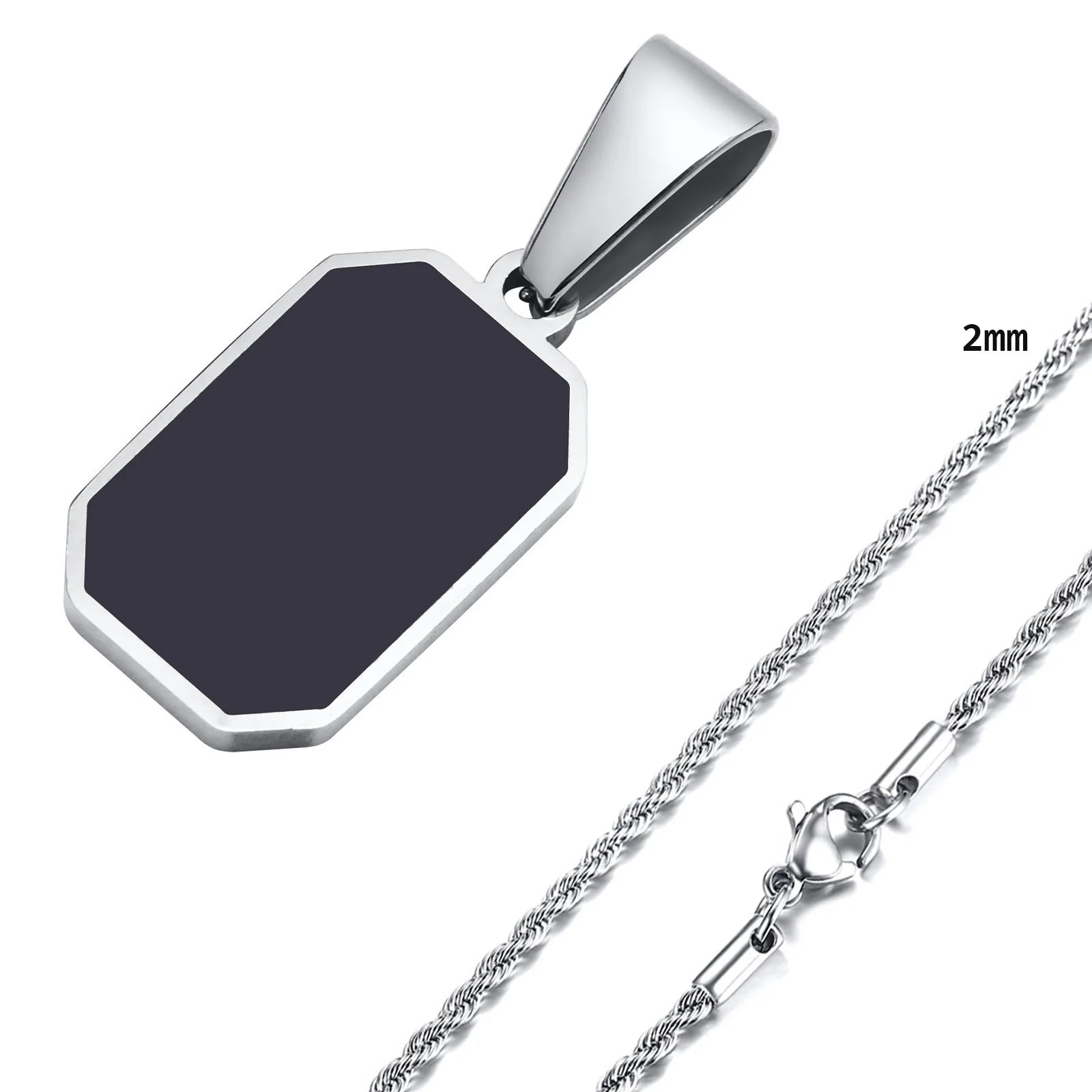Vnox Geometric Necklace for Men Women, Stainless Steel Square Rectangle Pendant with Box Rope Chain, Unisex Casual Collar