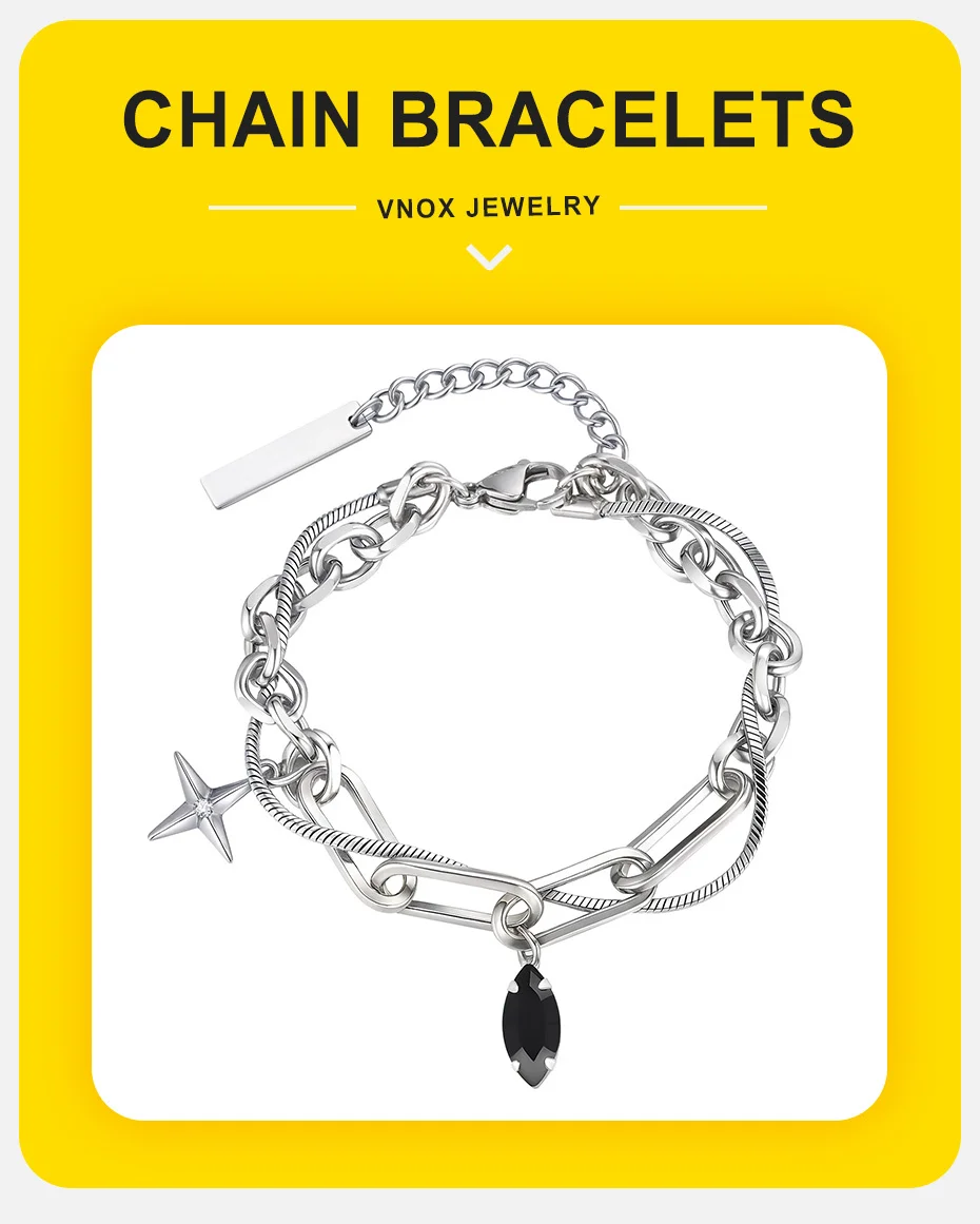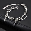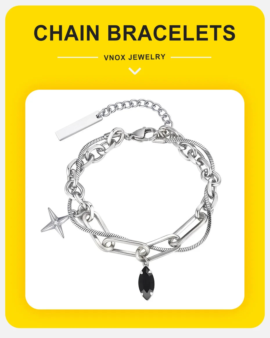 Vnox Simple Stacked Snake Chain Bracelets, Men Stainless Steel Paperclip Links Bracelets Cross Charm Pendant Adjustable Jewelry