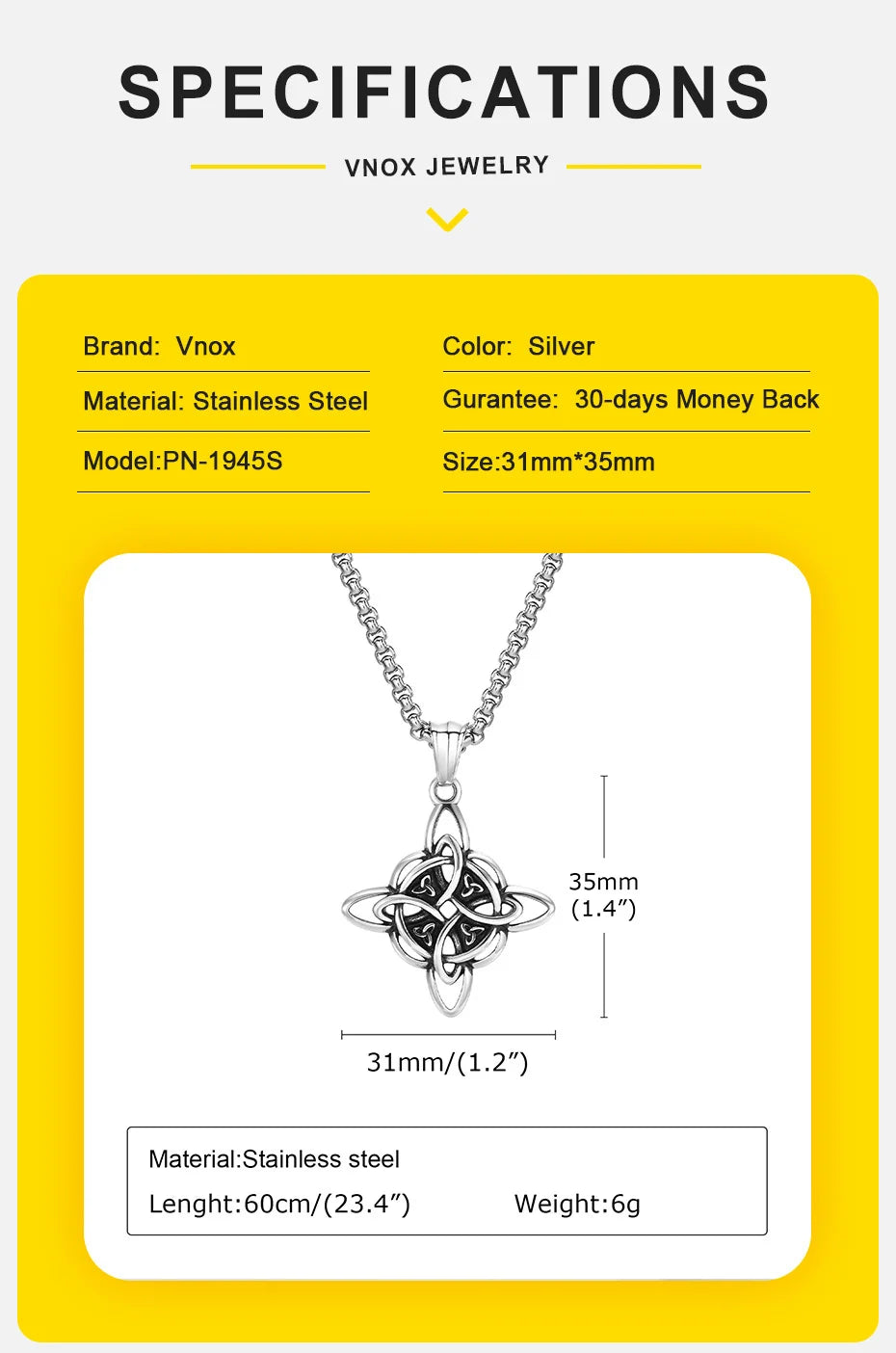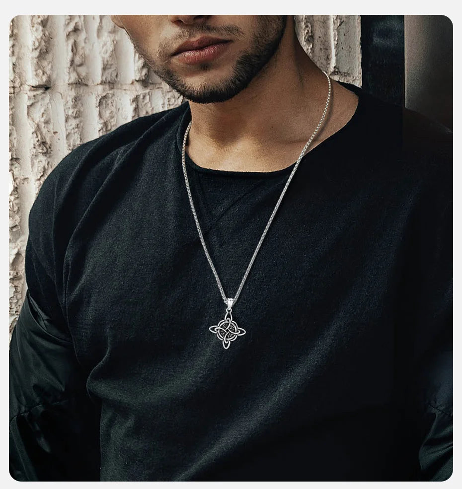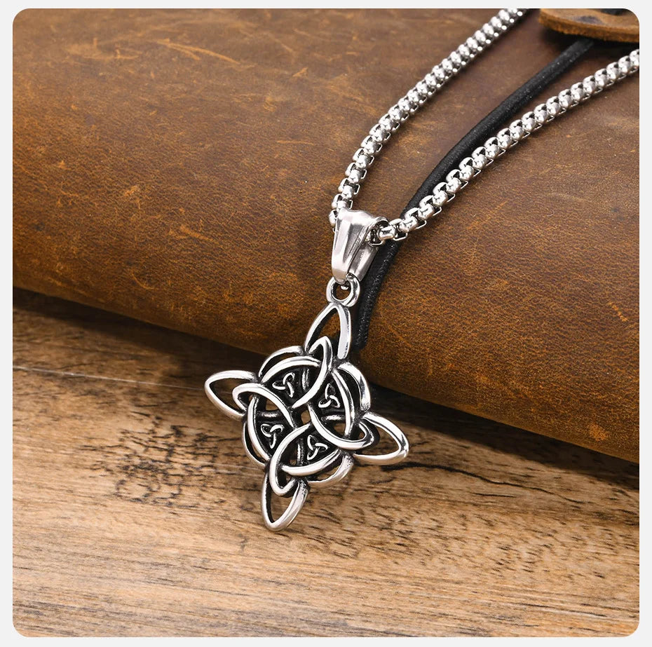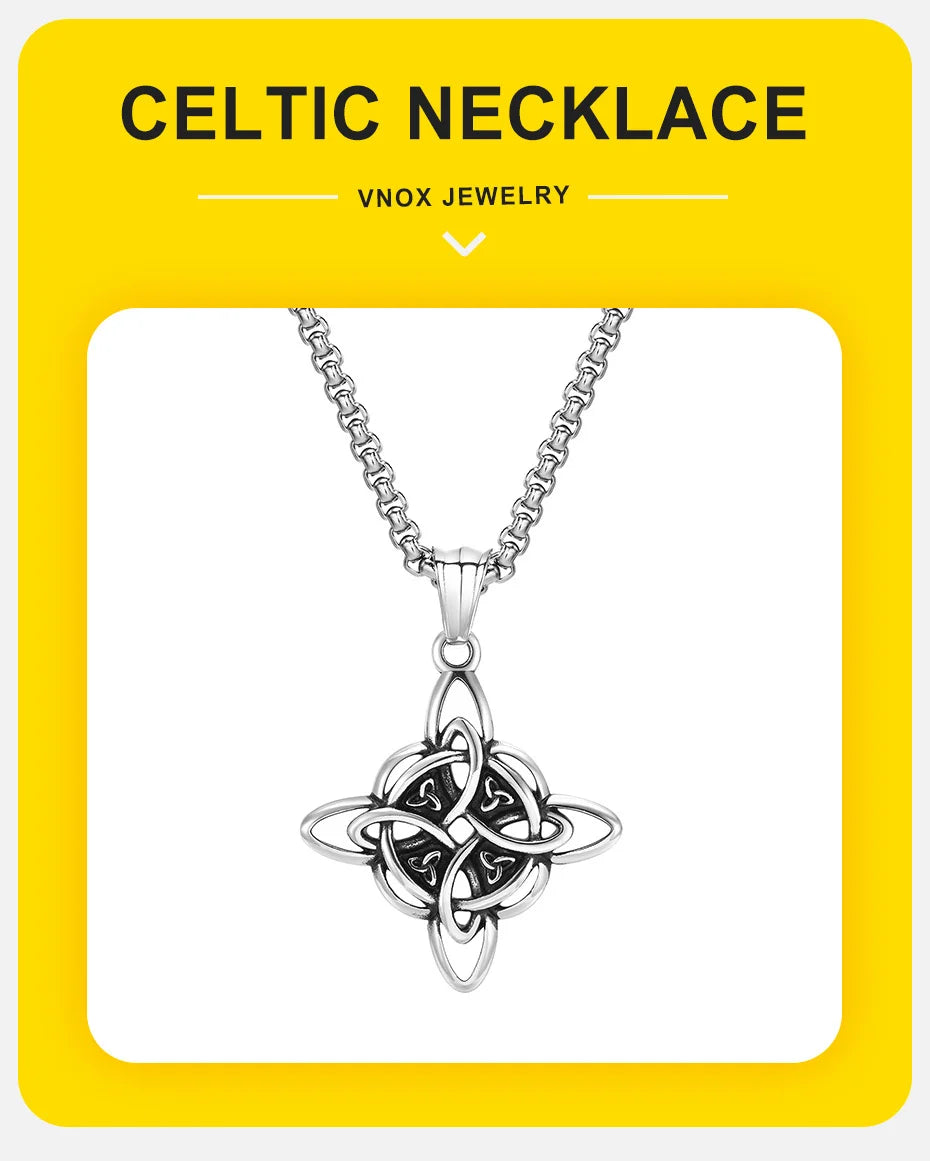 Vnox Vintage Celtic Knot Necklaces for Men Women,Stainless Steel Nordic North Europ Amulet Pendant,Triquetra Witches Knot Collar