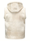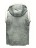 [Warm Hooded Vest] Warm & Windproof Men's Fleece-Lined Hooded Vest - Stylish Sleeveless Jacket with Zipper Pockets, Olive Green, Daily Comfort Vest | Hooded Jacket | Functional Pockets