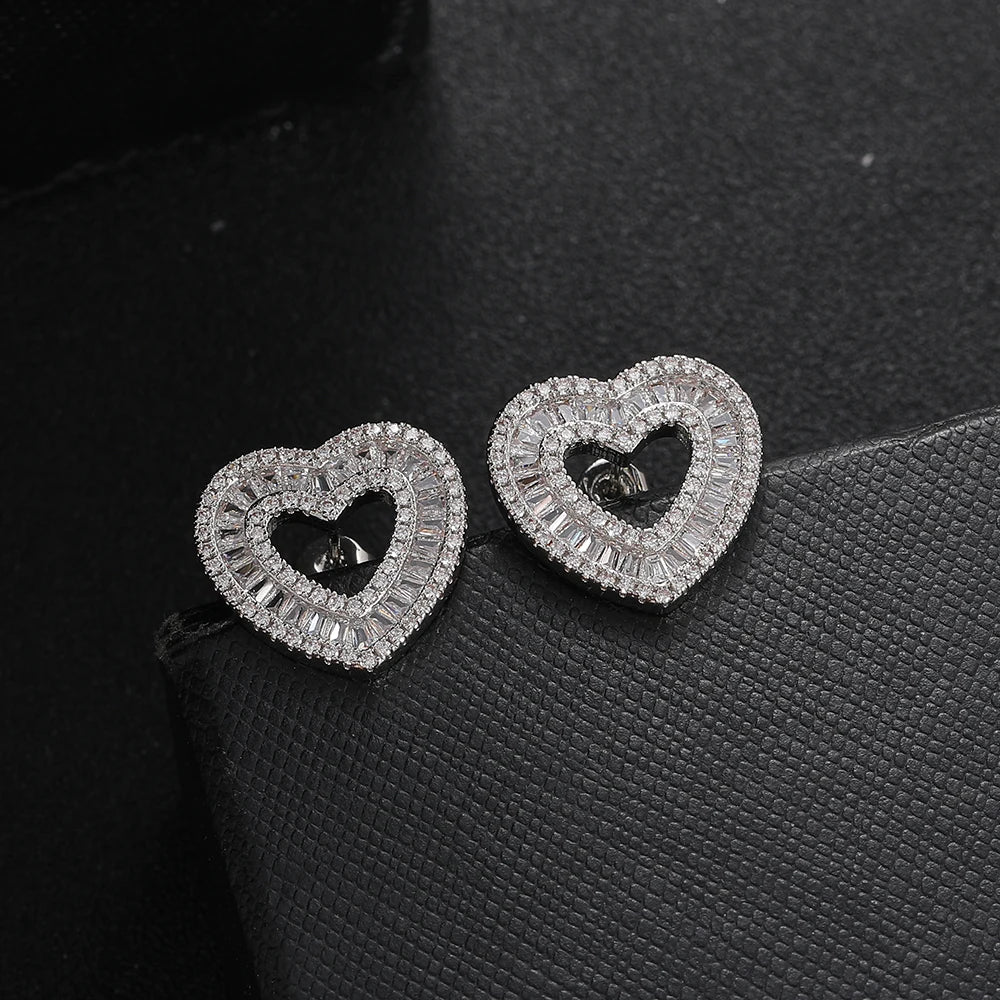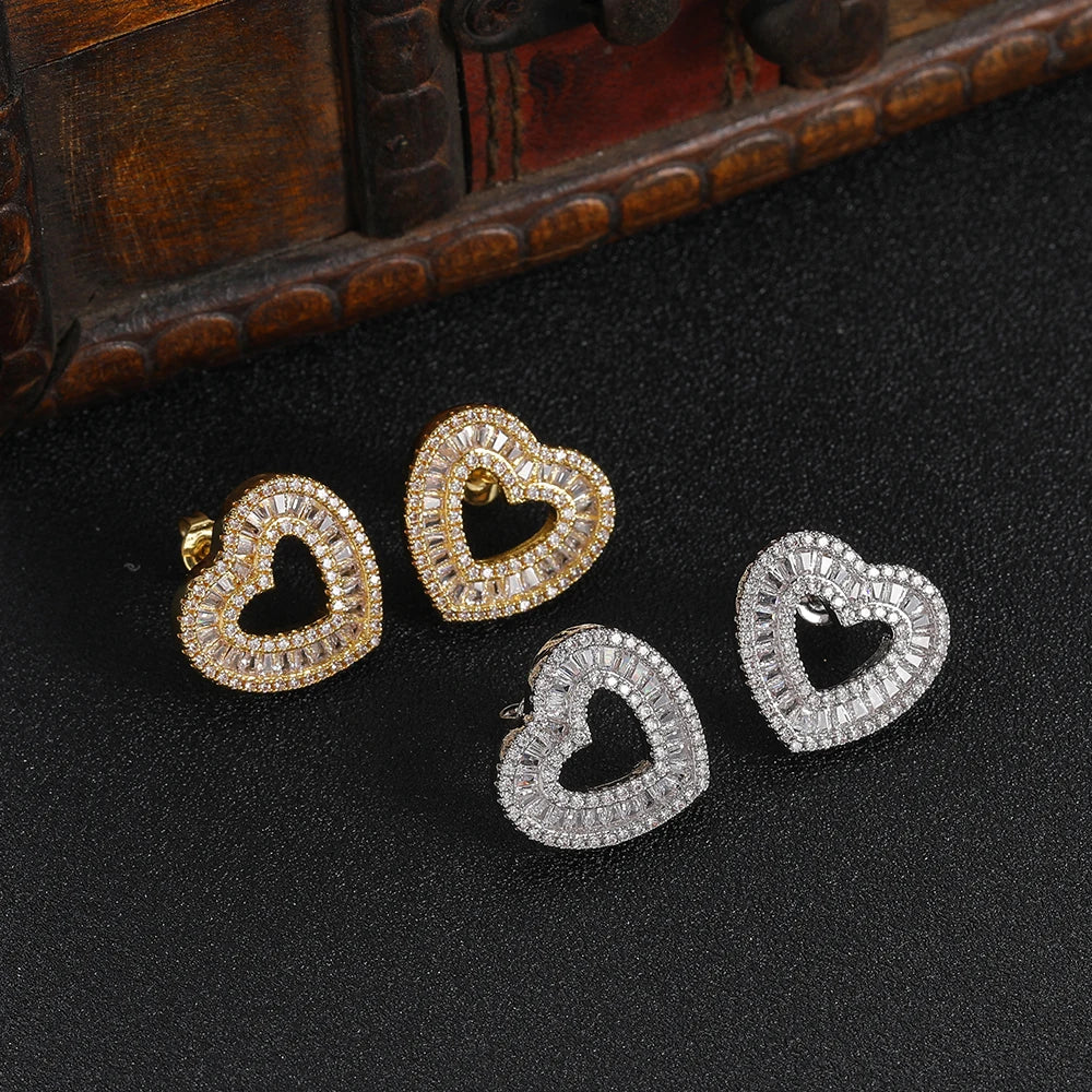 Wholesale Bling Bling Heart Earrings Brass CZ Earrings Fashion Jewelry For Women E064