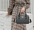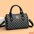 This series of handbags features a classic cylindrical shape with the iconic "M" pattern, showcasing a unique style. The bag is made of high - quality material, with leather handles and straps that offer a great texture, providing multiple carrying options to easily fit different scenarios. Metal fasteners and a circular "M" logo are delicately adorned, adding a touch of luxury. The first model, in black - gray color, is low - key and steady, suitable for those who love a simple style. The second model, with brown - gray matching, exudes a warm and stylish charm, perfect for daily commuting or casual outings. The third model, in white - gray combination, is fresh and elegant, adding brilliance to the overall look, favored by fashion - conscious people who like bright tones. The interior space is well - organized, capable of holding daily items like mobile phones, wallets, and cosmetics, ensuring a convenient trip. Whether for shopping, working, or dating, this handbag series can be a fashion companion, enhancing overall temperament and showing personal charm.