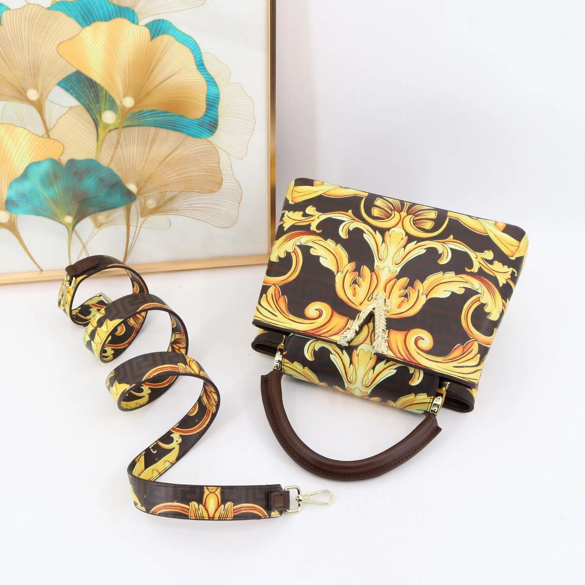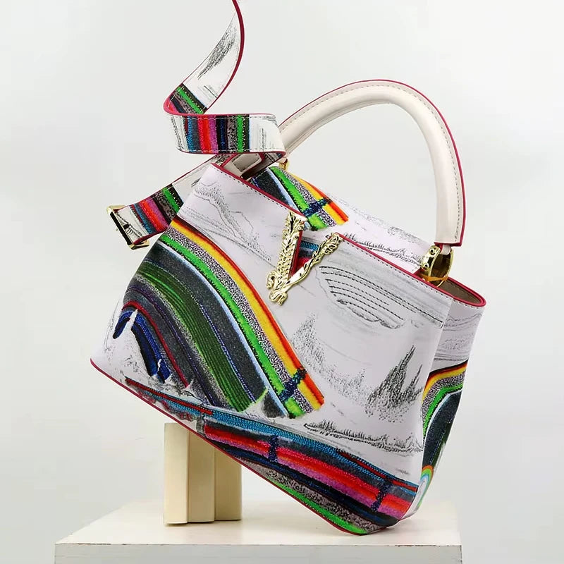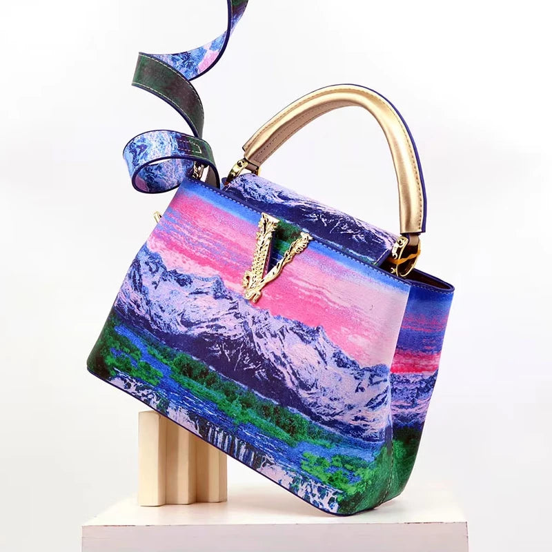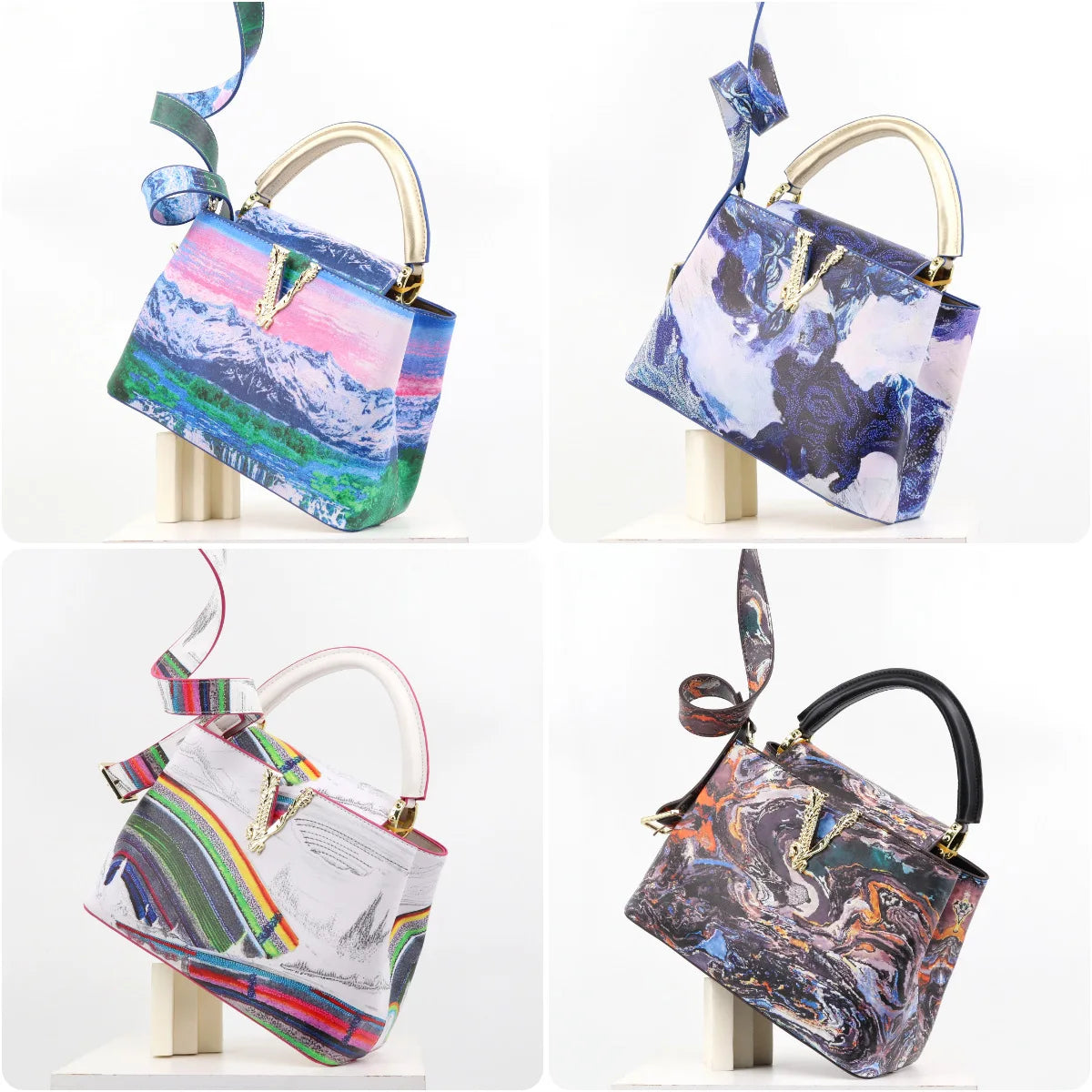 Women Bags Leather Purse Handbags Girl Shoulder Bags Crossbody Messenger Bag Female Totes V Style Art Classic Printed 2025
