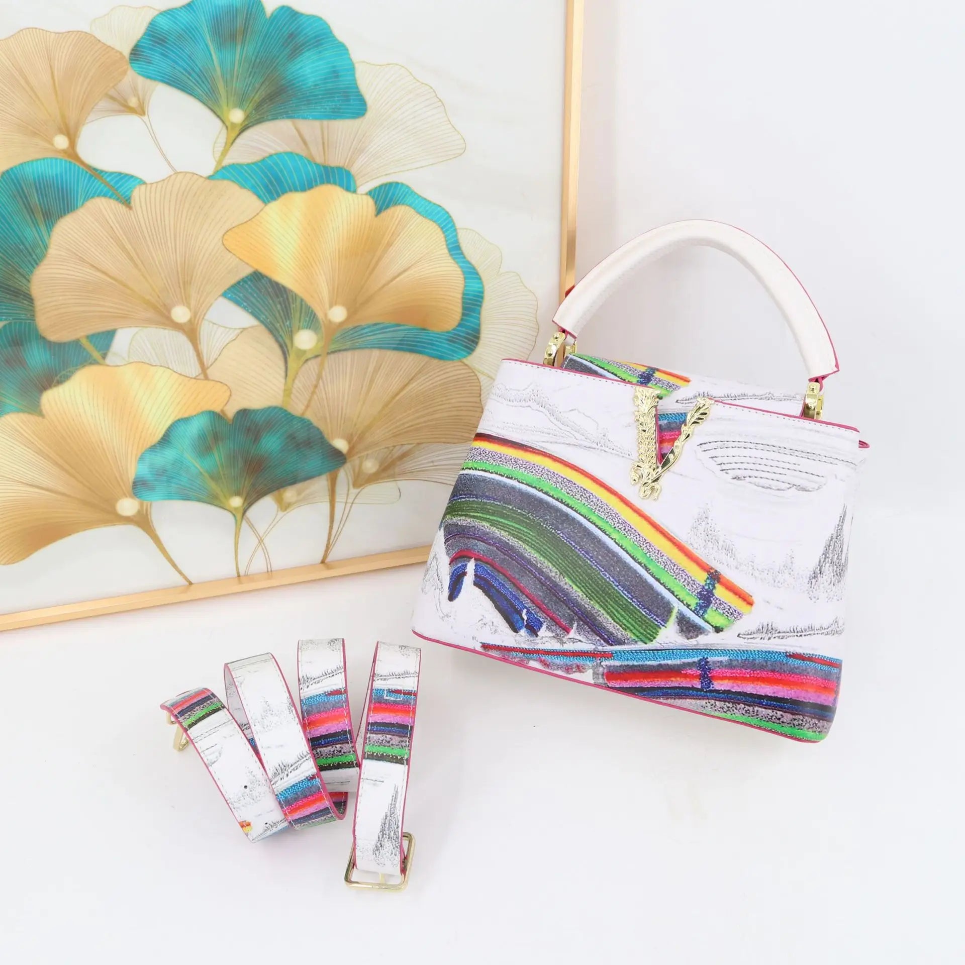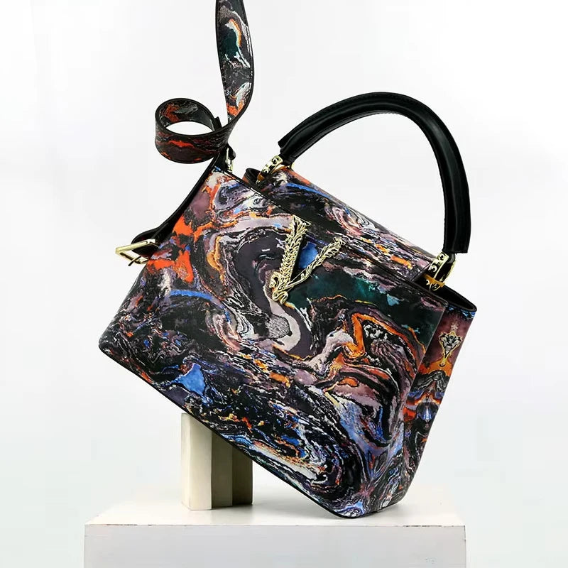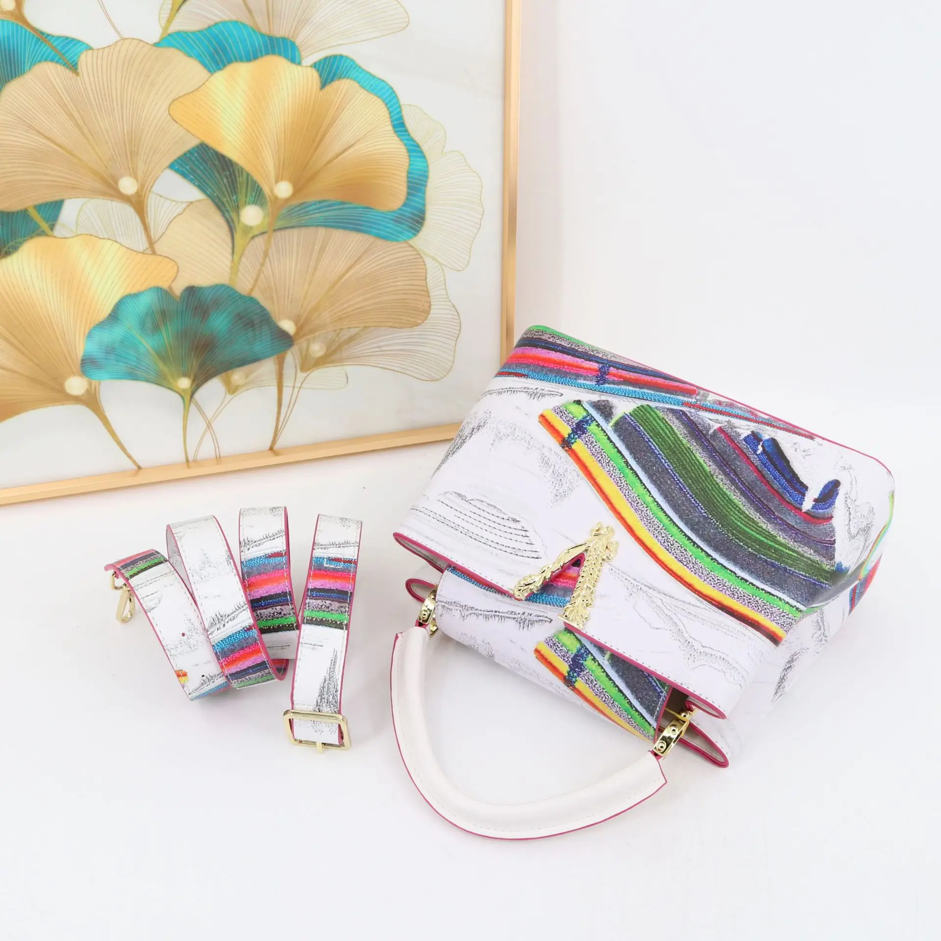 Women Bags Leather Purse Handbags Girl Shoulder Bags Crossbody Messenger Bag Female Totes V Style Art Classic Printed 2025
