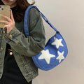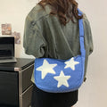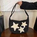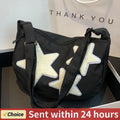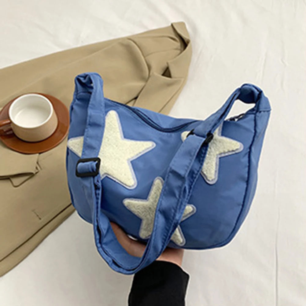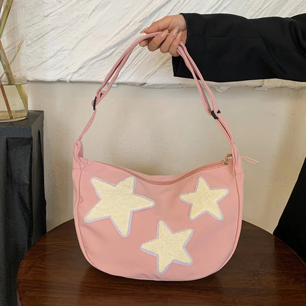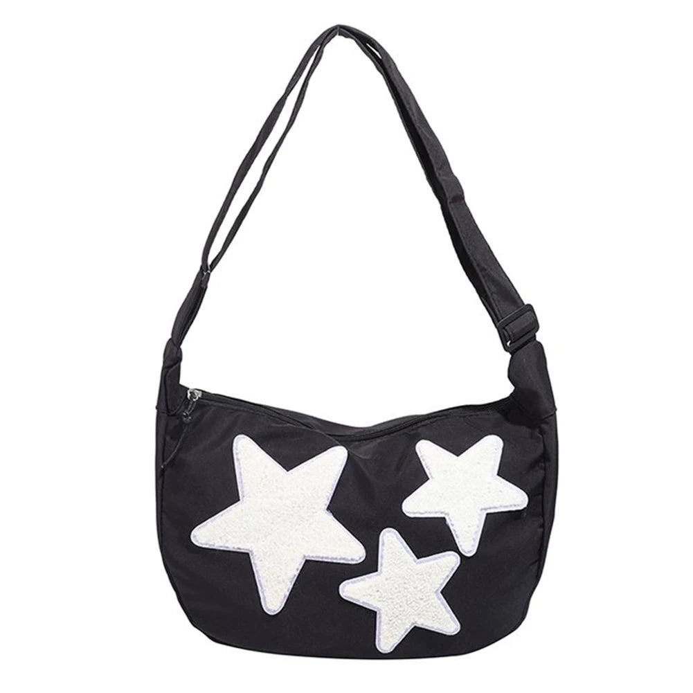 Women Star Shoulder Bag Versatile Crossbody Sling Bag Adjustable Strap Pentagram Satchel Bag Zipper Tote Bag Student Book Bag