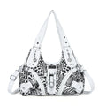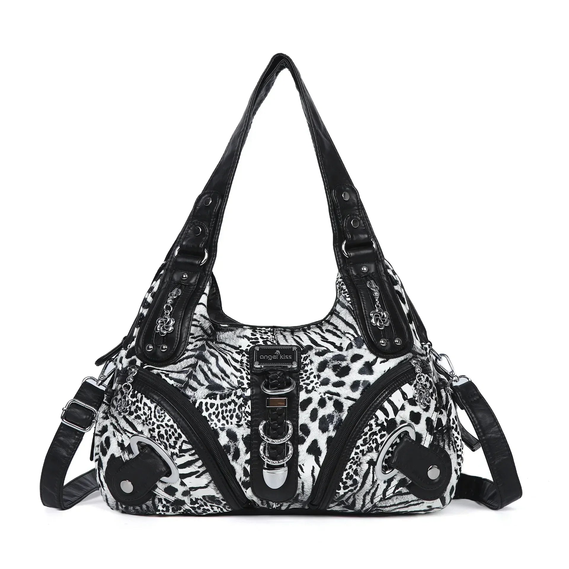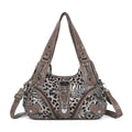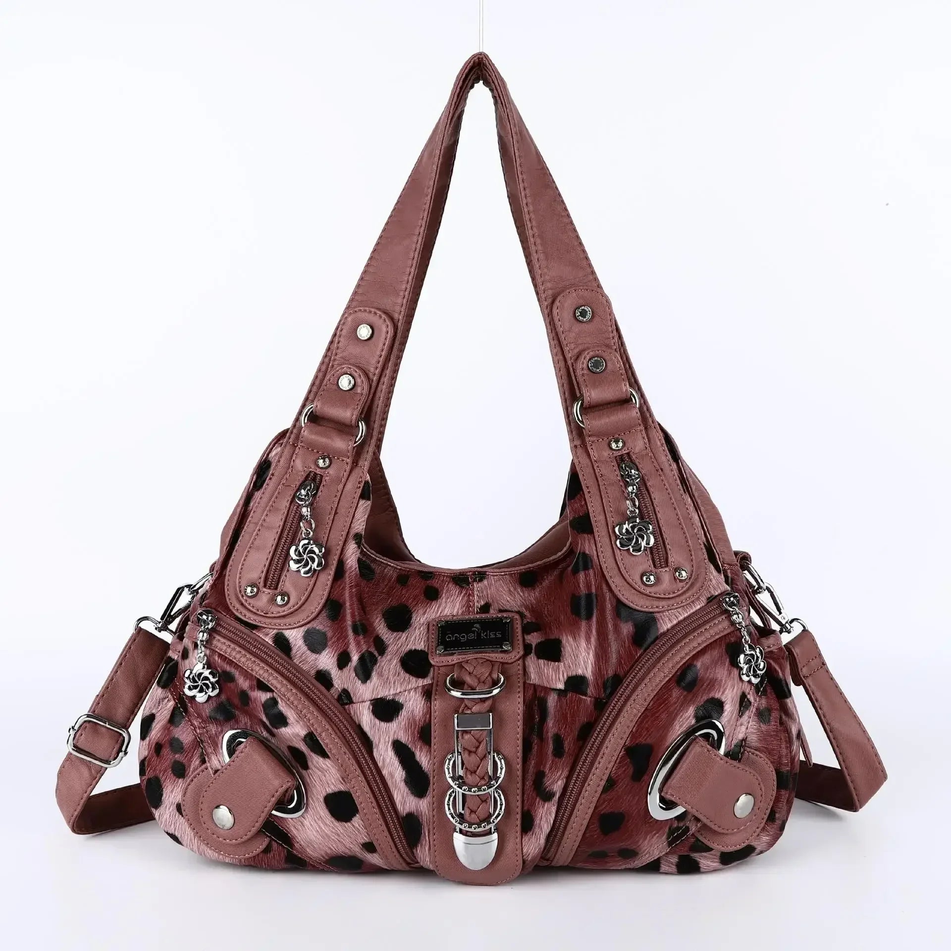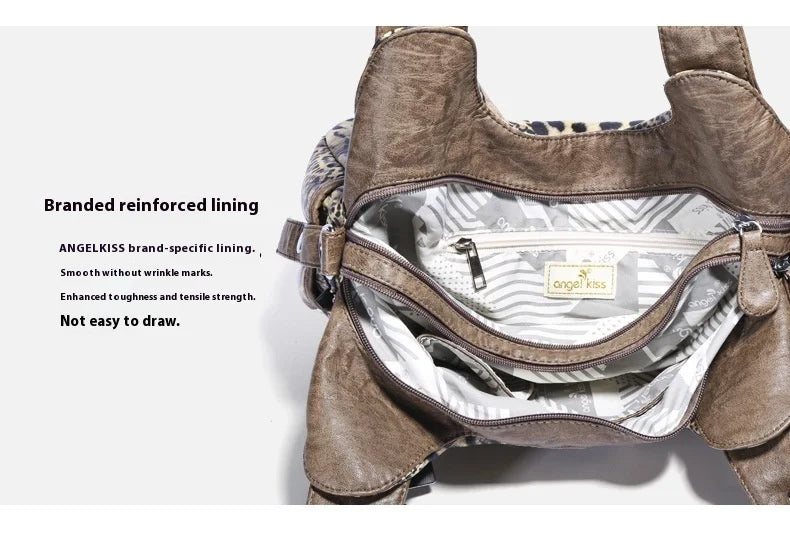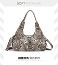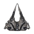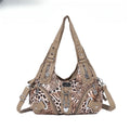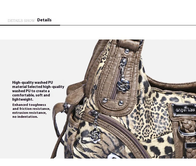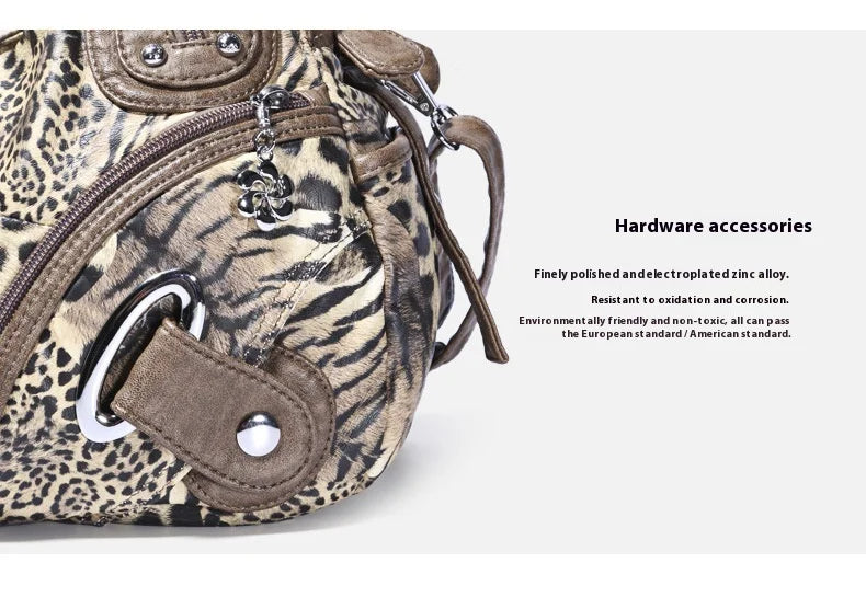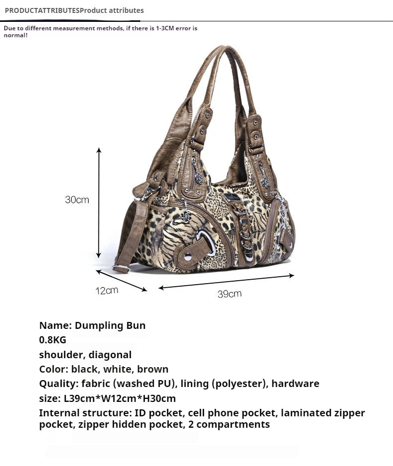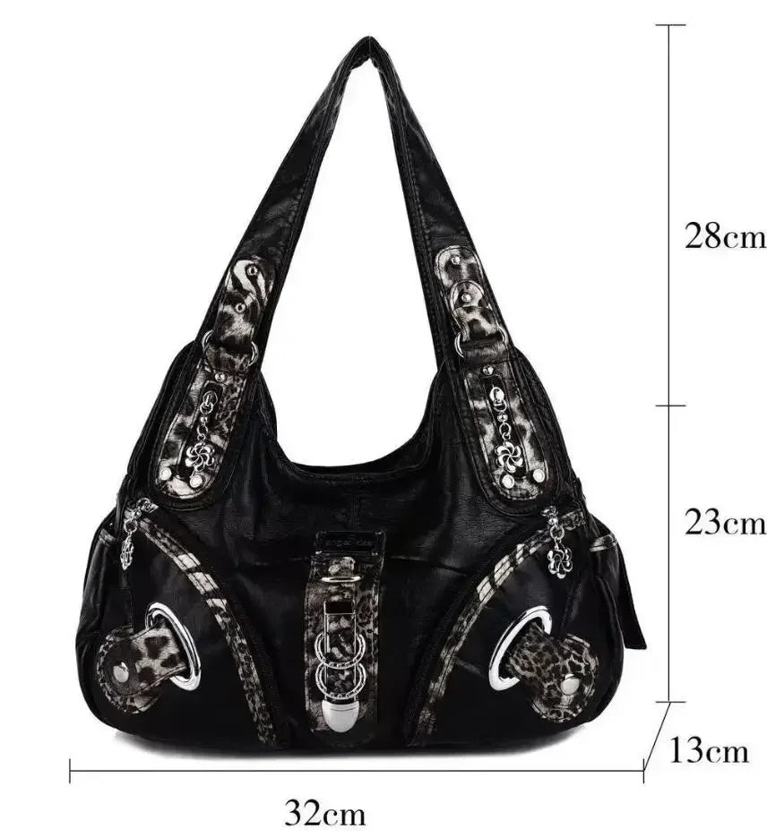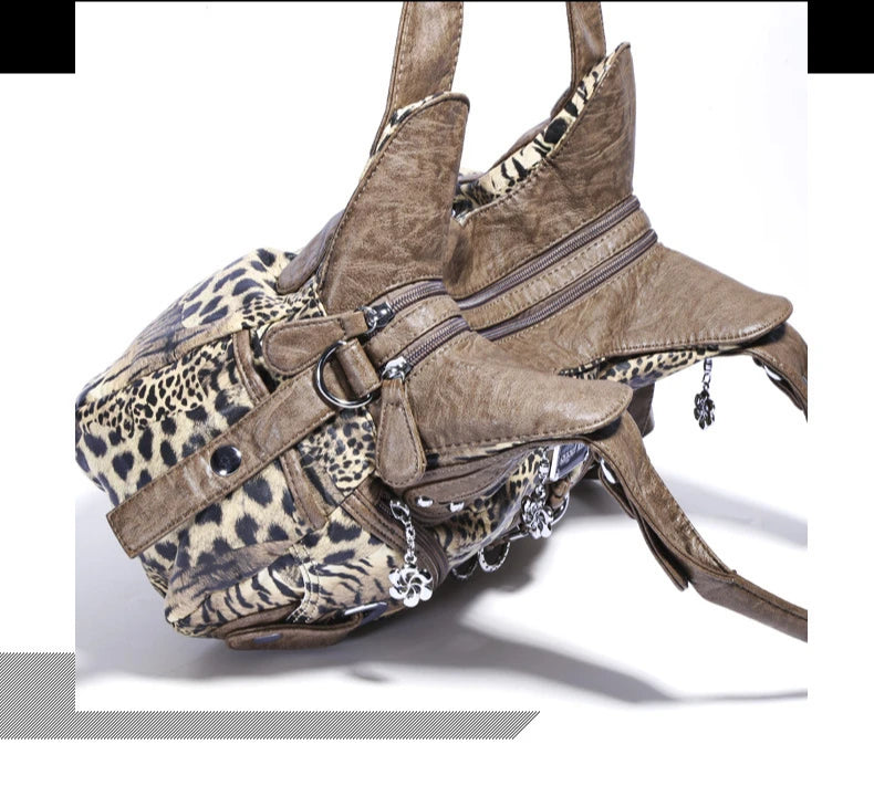 Women Vintage Leopard Print Handbags Punk Biker Satchel Top-handle Shoulder Bag Ladies Underarm Bags Multi-pockets Dumpling Pack