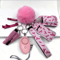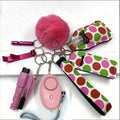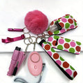 Women's Accessory Kit with Wristlet Pom Pom, Carabiners - 10-Piece Set, Battery Powered Personal Safety Alarm, Aluminum Alloy Hand Sanitizer Holder, Polyester Pouch